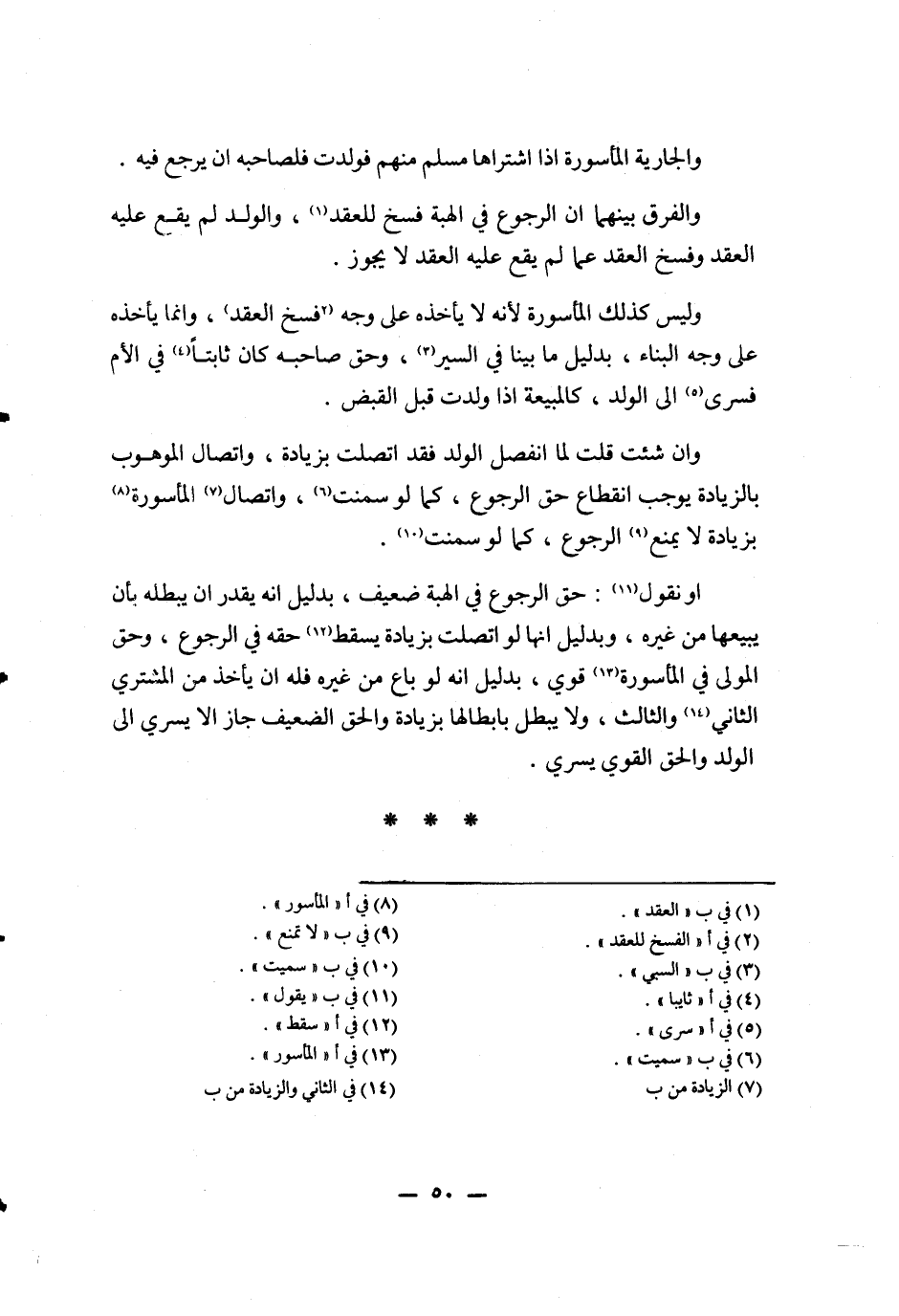 أَوْ نَقُولُ: حَقُّ الرُّجُوعِ فِي الْهِبَةِ ضَعِيفٌ، بِدَلِيلِ أَنَّهُ يَقْدِرُ أَنْ يُبْطِلَهُ بِأَنْ يَبِيعَهَا مِنْ غَيْرِهِ، وَبِدَلِيلِ أَنَّهَا لَوْ اتَّصَلَتْ بِزِيَادَةٍ يَسْقُطُ حَقُّهُ فِي الرُّجُوعِ، وَحَقُّ الْمَوْلَى فِي الْمَأْسُورَةِ قَوِيٌّ، بِدَلِيلِ أَنَّهُ لَوْ بَاعَ مِنْ غَيْرِهِ فَلَهُ أَنْ يَأْخُذَ مِنْ الْمُشْتَرِي الثَّانِي وَالثَّالِثِ، وَلَا يَبْطُلُ بِإِبْطَالِهَا بِزِيَادَةٍ وَالْحَقُّ الضَّعِيفُ جَازَ أَلَّا يَسْرِيَ إلَى الْوَلَدِ وَالْحَقُّ الْقَوِيُّ يَسْرِي.