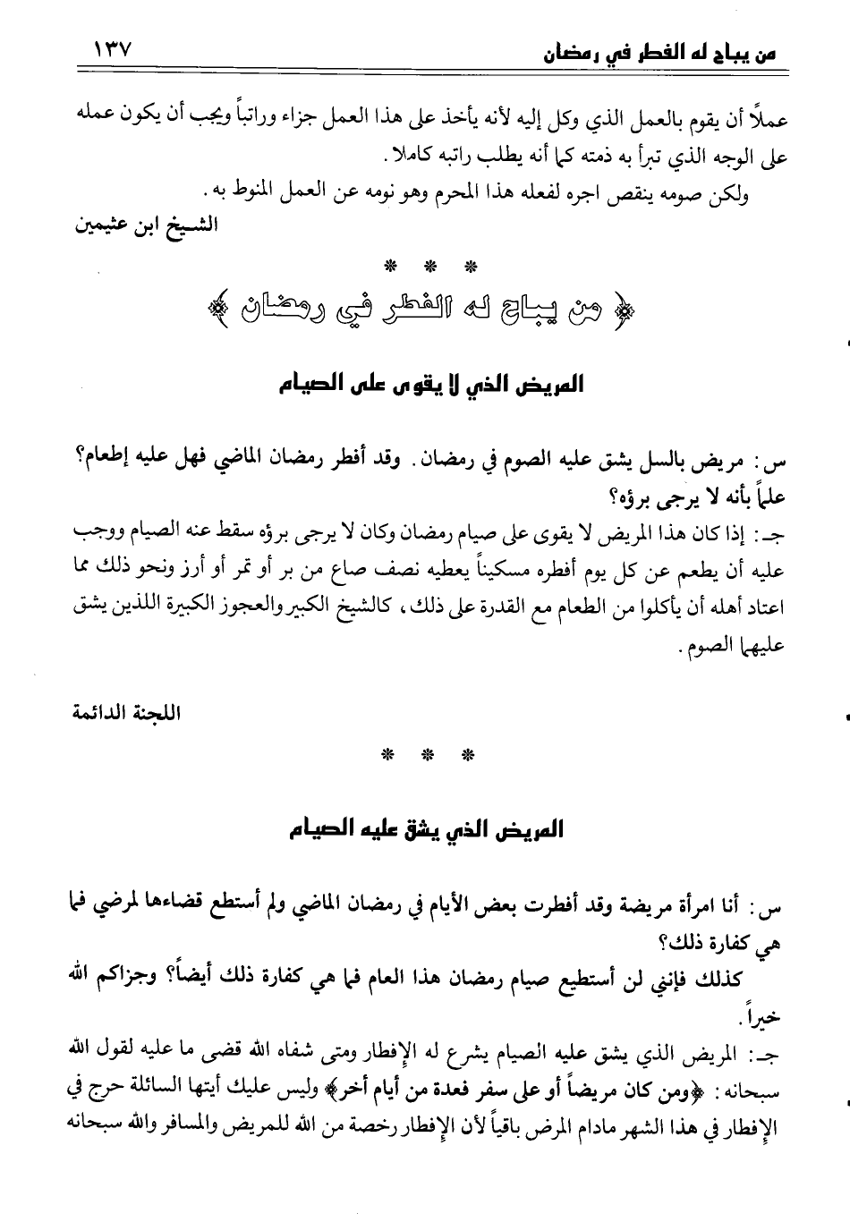 المريض الذي يشق عليه الصيام