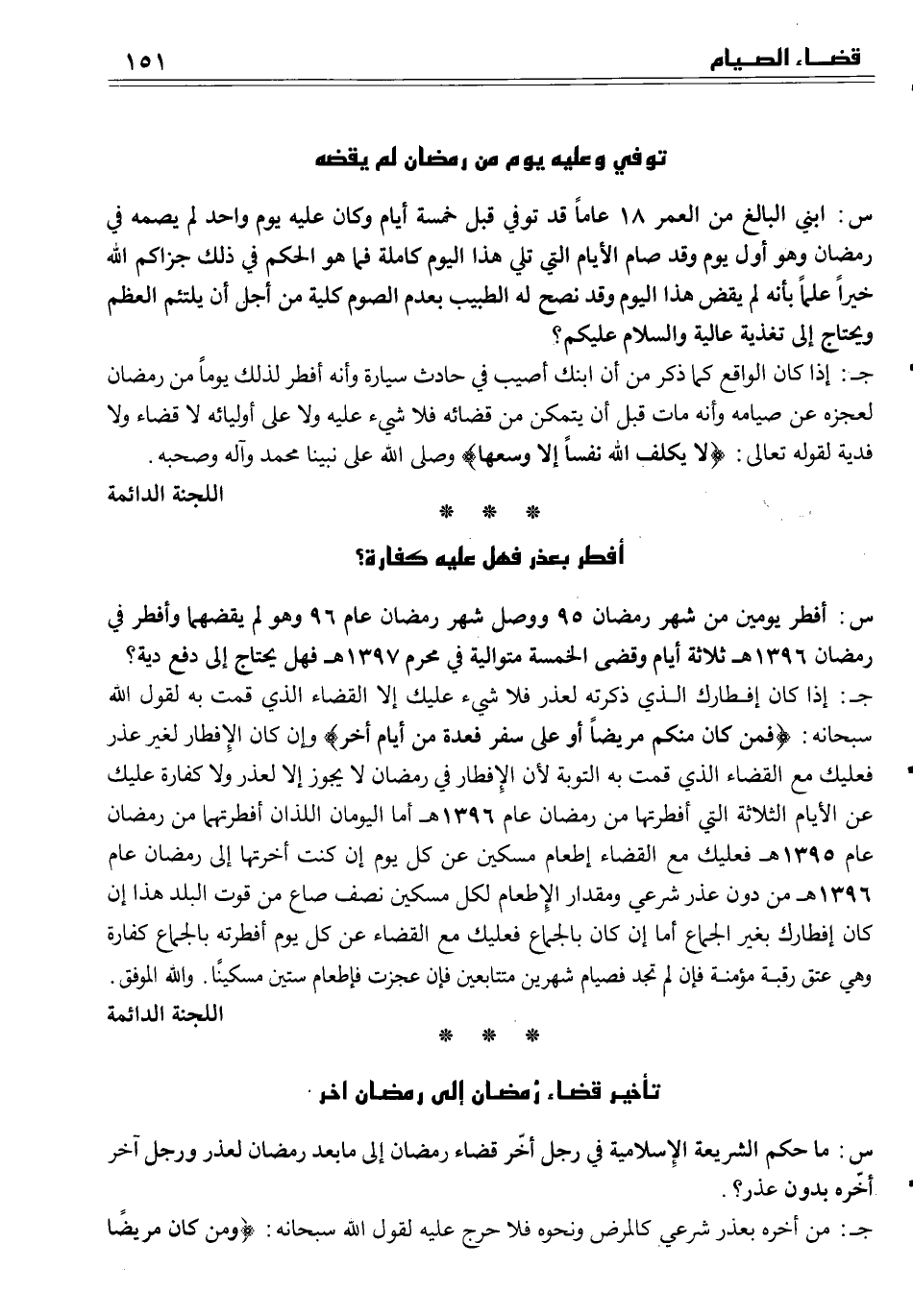 ج من أخره بعذر شرعي كالمرض ونحوه فلا حرج عليه لقول الله سبحانه (ومن كان مريضاً