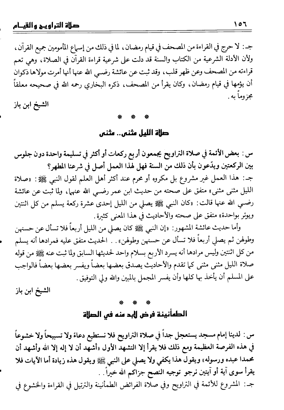 ج المشروع للأئمة في التراويح وفي صلاة الفرائض الطمأنينة والترتيل في القراءة والخشوع في