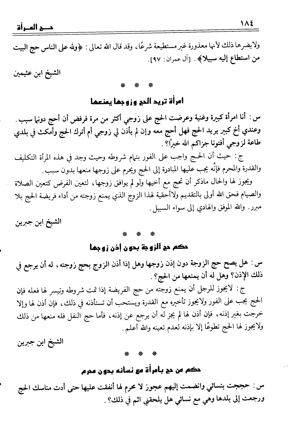 ج حيث أن الحج واجب على الفور بتمام شروطه وحيث وجد في هذه المرأة التكليف والقدرة والمحرم فإنَّه يجب عليها المبادرة إلى الحج ويحرم على زوجها منعها بدون سبب.