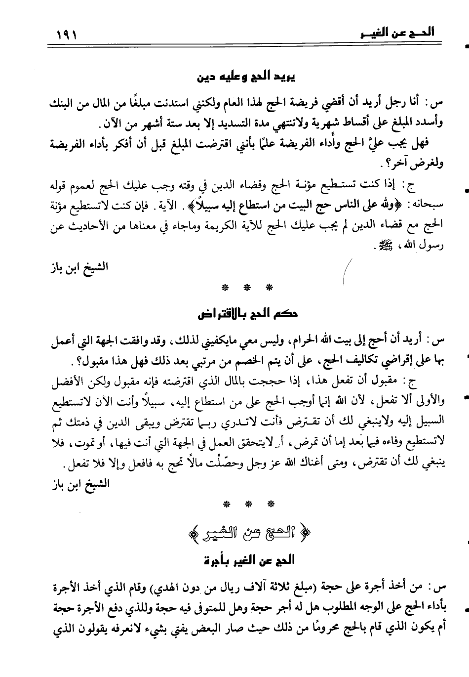 ج مقبول أن تفعل هذا، إذا حججت بالمال الذي اقترضته فإنه مقبول ولكن الأفضل والأولى ألا تفعل، لأن الله إنما أو جب الحج على من استطاع إليه، سبيلاً وأنت الآن لا تستطيع السبيل إليه ولا ينبغي لك أن تقترض فأنت لا تدري ربما تقترض ويبقى الدين في ذمتك ثم لا تستطيع وفاءه فيما بعد إما أن تمرض، أو لا يتحقق العمل في الجهة التي أنت فيها، أو تموت، فلا ينبغي لك أن تقترض، ومتى أغناك الله عز وجل وحصلت مالاً تحج به فافعل وإلا فلا تفعل.