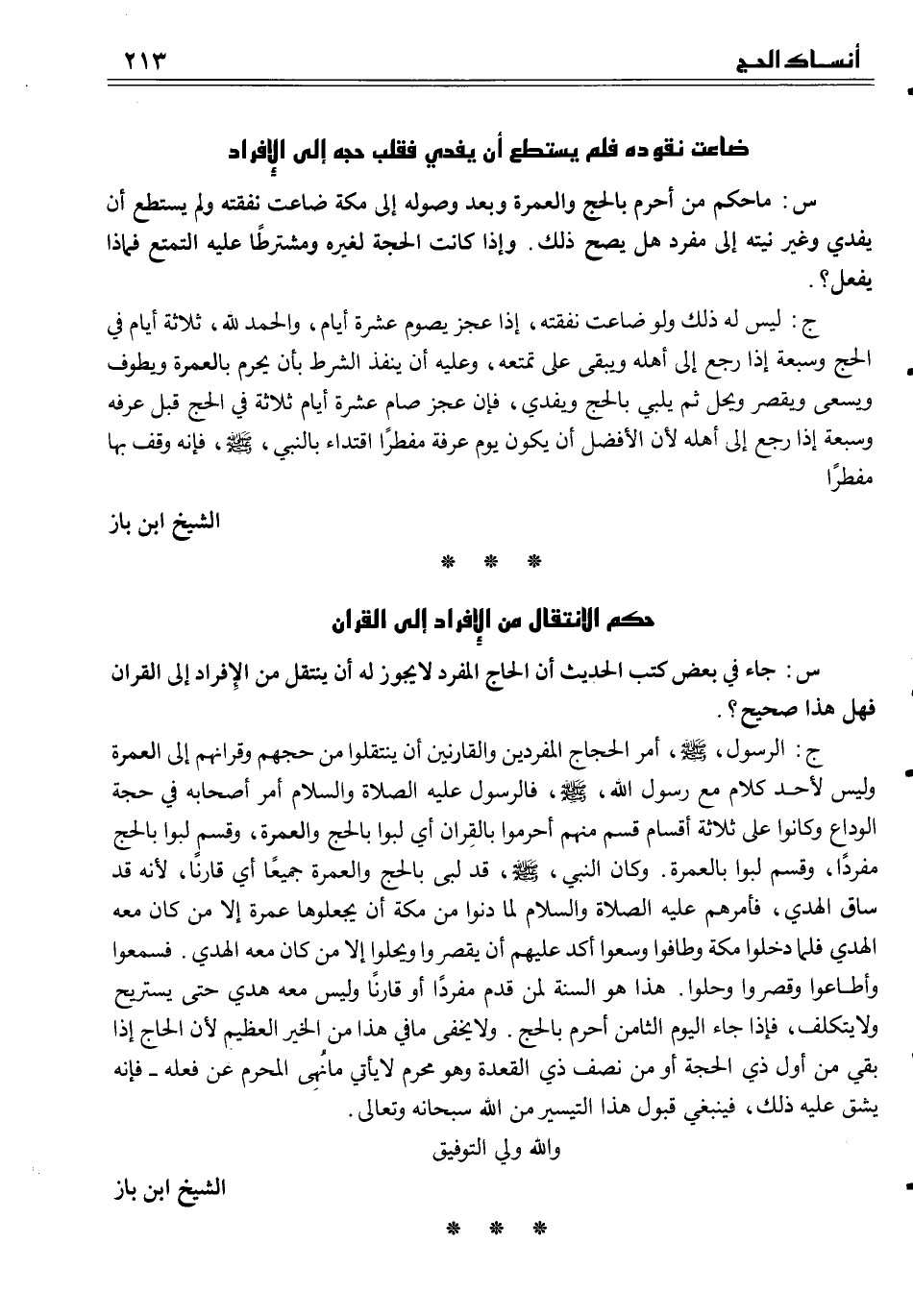 ضاعت نقوده فلم يستطع أن يفدي فقلب حجه إلى الإفراد