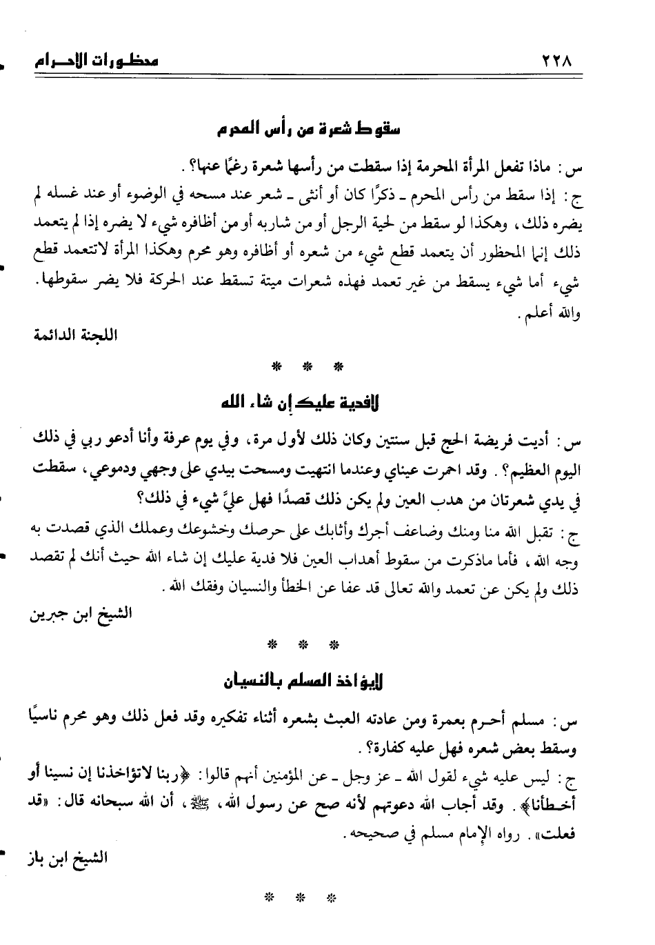 س ماذا تفعل المرأة المحرمة إذا سقطت من رأسها شعرة رغماً عنها؟.