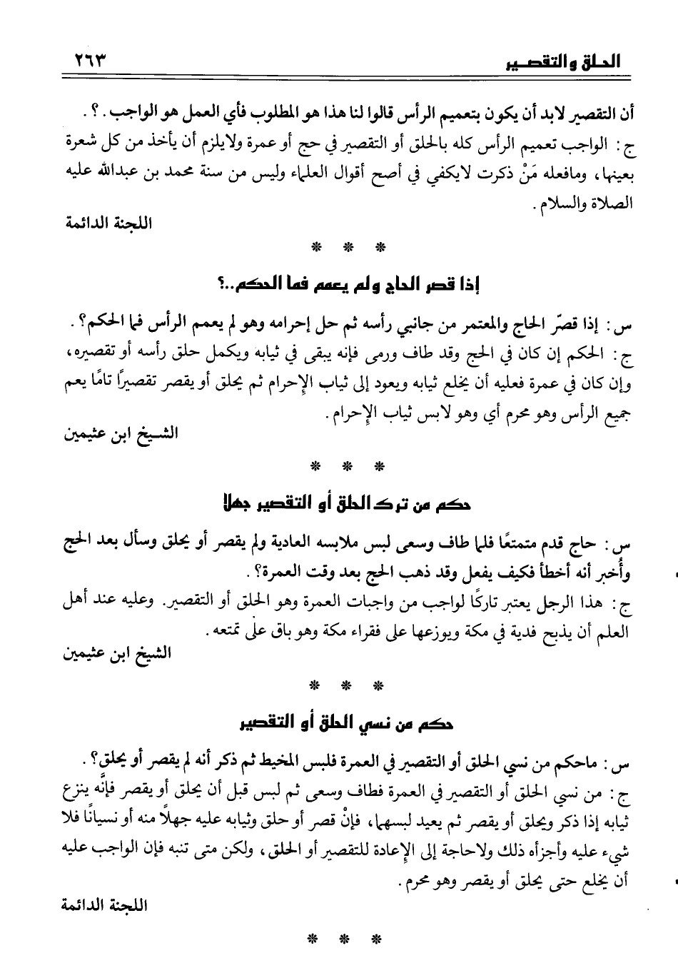 أن التقصير لا بد أن يكون بتعميم الرأس قالوا لنا هذا هو المطلوب فأي العمل هو الواجب.؟..