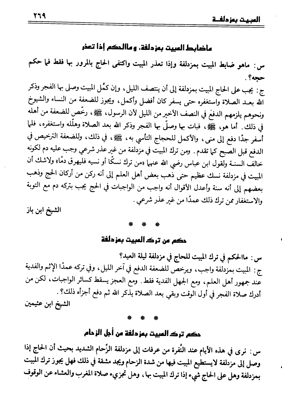 س نرى في هذه الأيام عند النَّفرة من عرفات إلى مزدلفة الزَّحام الشديد بحيث أن الحاج إذا وصل إلى مزدلفة لا يستطيع المبيت فيها من شدة الزحام ويجد مشقة في ذلك فهل يجوز ترك المبيت بمزدلفة وهل على الحاج شيء إذا ترك المبيت بها، وهل تجزيء صلاة المغرب والعشاء عن الوقوف