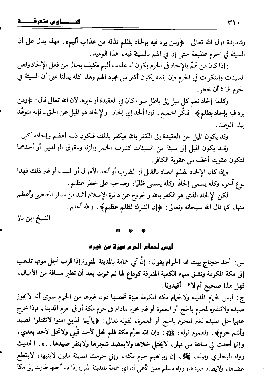 وشديدة قول الله تعالى (ومن يرد فيه بإلحاد بظلم نذقه من عذاب أليم)) . فهذا يدل على أن السيئة في الحرم عظيمة حتى إن في الهم بالسيئة فيه، هذا الوعيد.