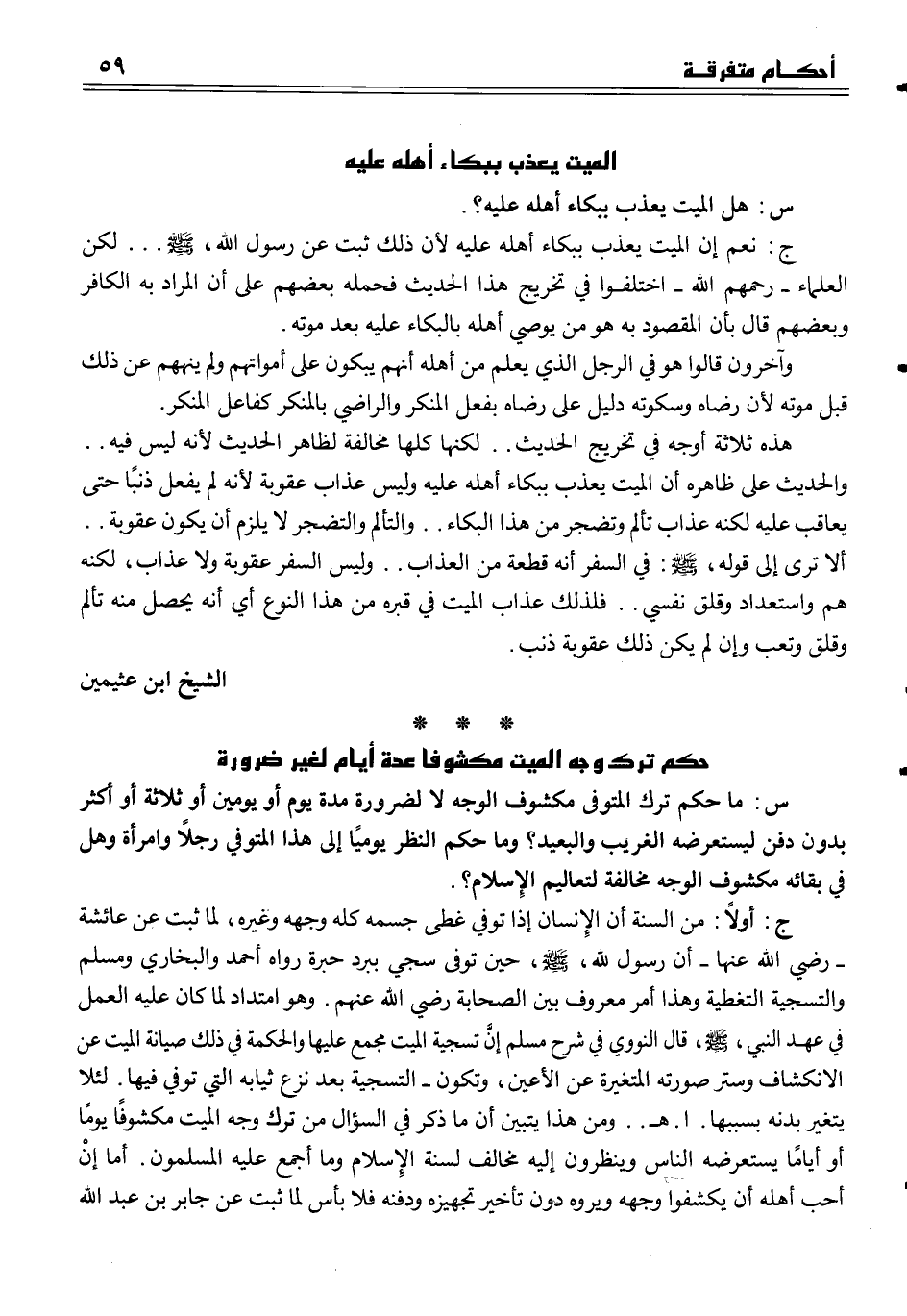 حكم ترك وجه الميت مكشوفا عد أيام لغير ضرورة