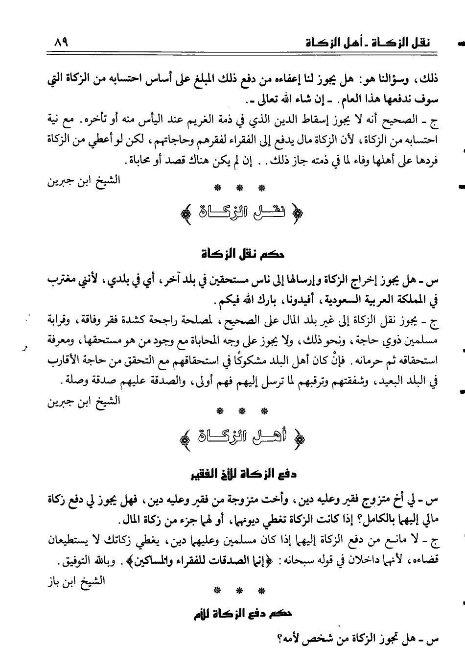 س ـ هل يجوز إخراج الزكاة وإرسالها إلى ناس مستحقين في بلد آخر، أي في بلدي، لأنني مغترب في المملكة العربية السعودية، أفيدونا، بارك الله فيكم.