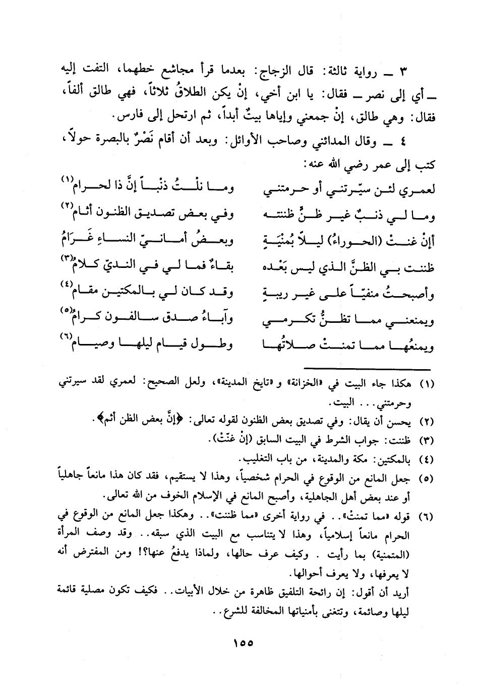 (6) قوله "مما تمنتْ" .. في رواية أخرى " مما ظننت" .. وهكذا جعل المانع من الوقوع في الحرام مانعاً إسلامياً، وهذا لا يتناسب مع البيت الذي سبقه .. وقد وصف المرأة (المتمنية) بما رأيت.
