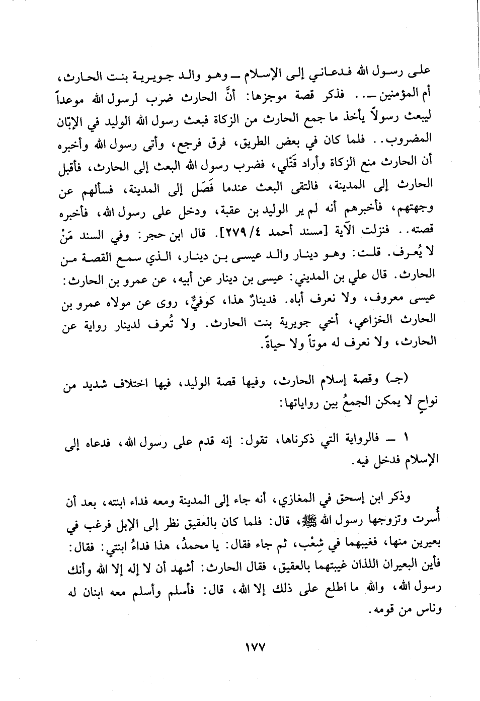 (جـ) وقصة إسلام الحارث، وفيها قصة الوليد، فيها اختلاف شديد من نواحٍ لا يمكن الجمعُ بين رواياتها: