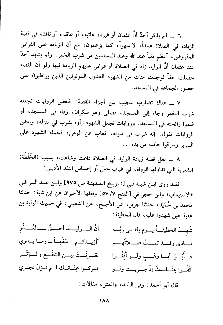 8 ـ لعل قصة زيادة الوليد في الصلاة ذاعت وشاعت، بسبب (الخَلْطَة) الشعرية التي تداولها الرواة، في غياب حسّ أو إحساس النقد الأدبي: