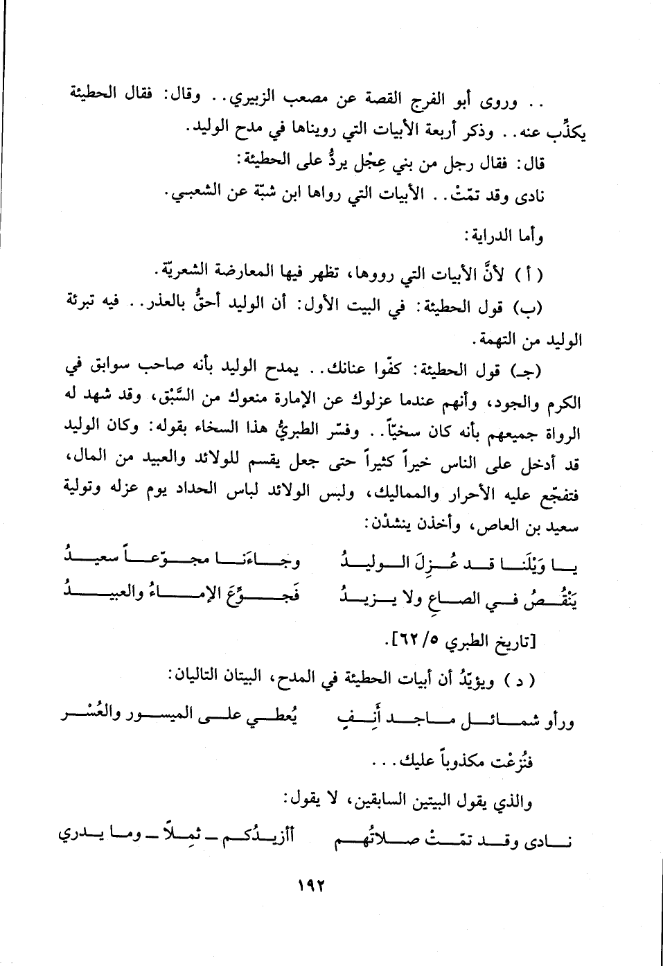 (د) ويؤيّدُ أن أبيات الحطيئة في المدح، البيتان التاليان: