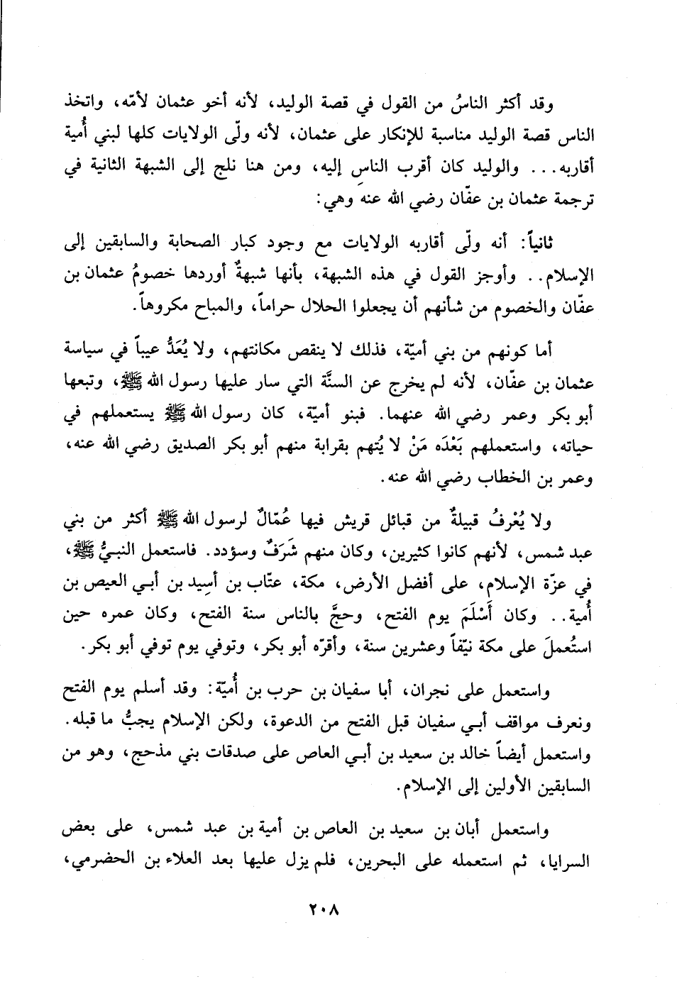 ثانياً: أنه ولّى أقاربه الولايات مع وجود كبار الصحابة والسابقين إلى الإسلام .. وأوجز القول في هذه الشبهة، بأنها شبهةٌ أوردها خصومُ عثمان بن عفّان والخصوم من شأنهم أن يجعلوا الحلال حراماً، والمباح مكروهاً.