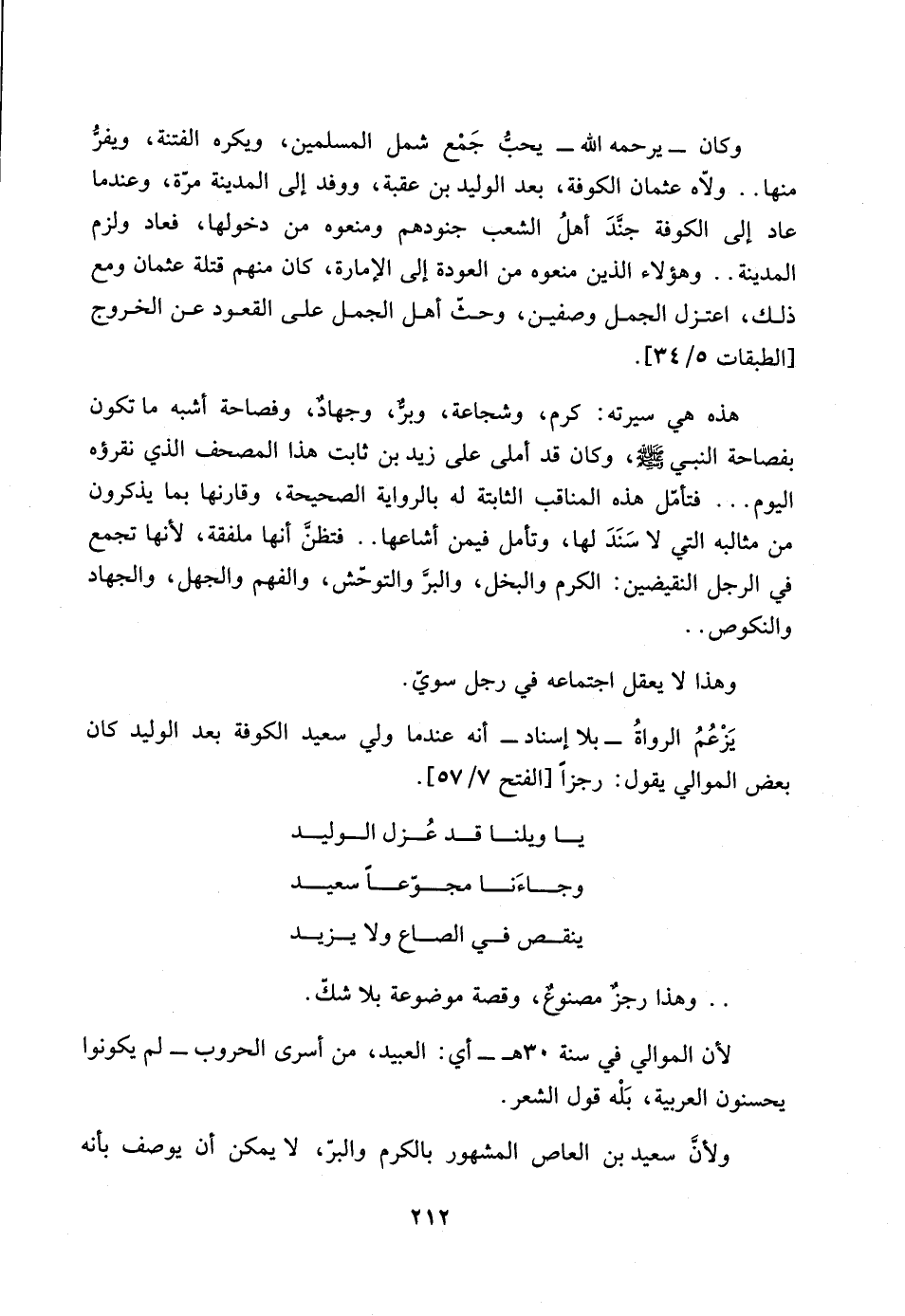 يزعم الرواةُ ـ بلا إسناد ـ أنه عندما ولي سعيد الكوفة بعد الوليد كان بعض الموالي يقول: رجزاً [الفتح 57/ 7].