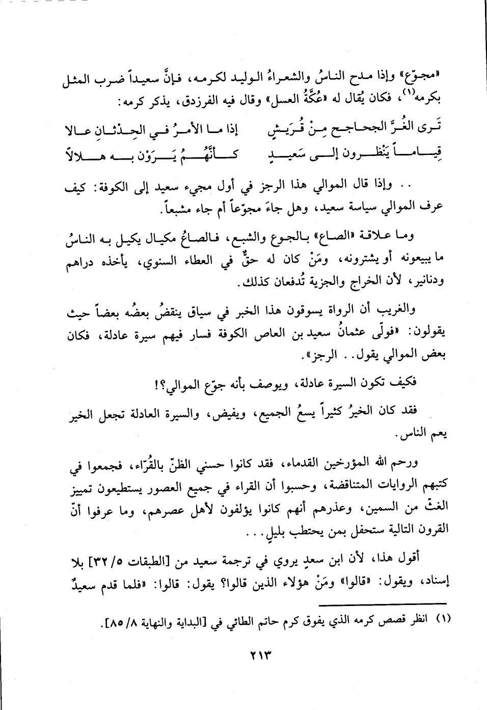 أقول هذا , لأن ابن سعدٍ يروي في ترجمة سعيد من [الطبقات 32/ 5] بلا إسناد , ويقول: "قالوا" ومَنْ هؤلاء الذين قالوا؟ يقول: قالوا: "فلما قدم سعيدٌ…