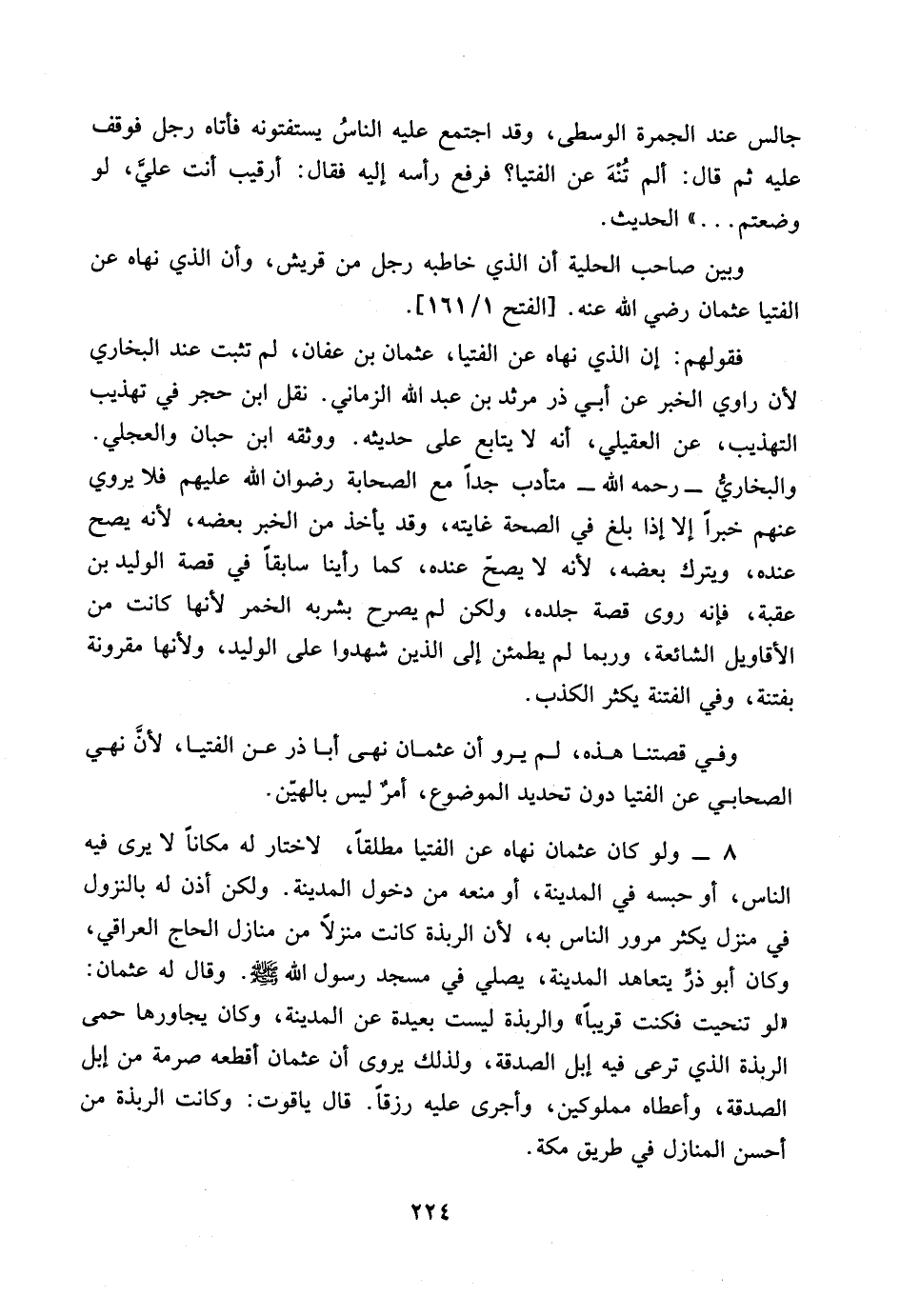 8 ـ ولو كان عثمان نهاه عن الفتيا مطلقاً، لاختار له مكاناً لا يرى فيه الناس، أو حبسه في المدينة، أو منعه من دخول المدينة.