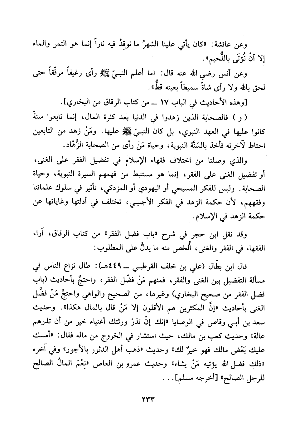 وقد نقل ابن حجر في شرح "باب فضل الفقر" من كتاب الرقاق، آراء الفقهاء في الفقر والغنى، أُلخص منه ما يدلُّ على المطلوب: