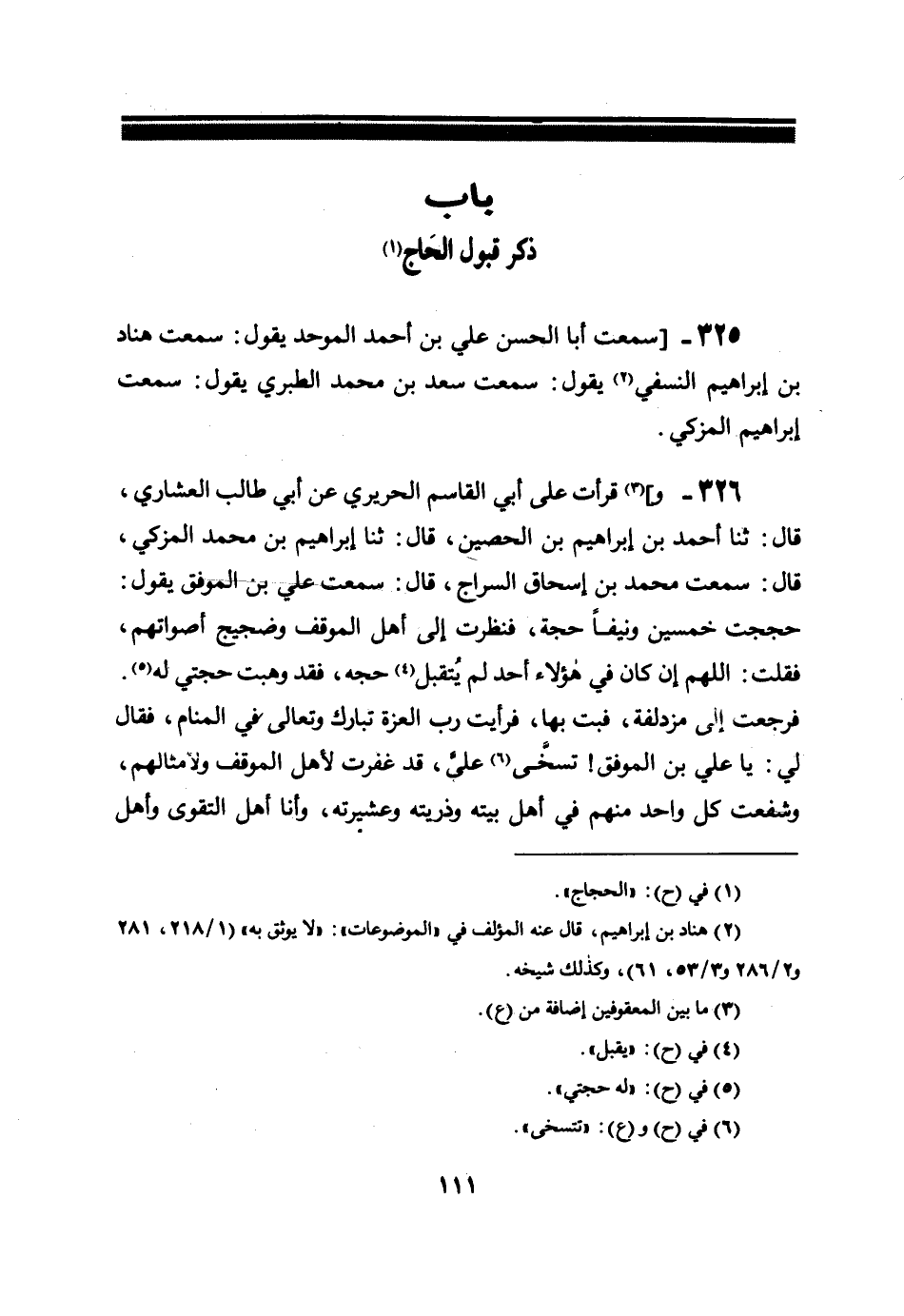 325-[سمعت أبا الحسن علي بن أحمد الموحد يقول: سمعت هناد بن إبراهيم النسفي يقول: سمعت سعد بن محمد الطبري يقول: سمعت إبراهيم المزكي.