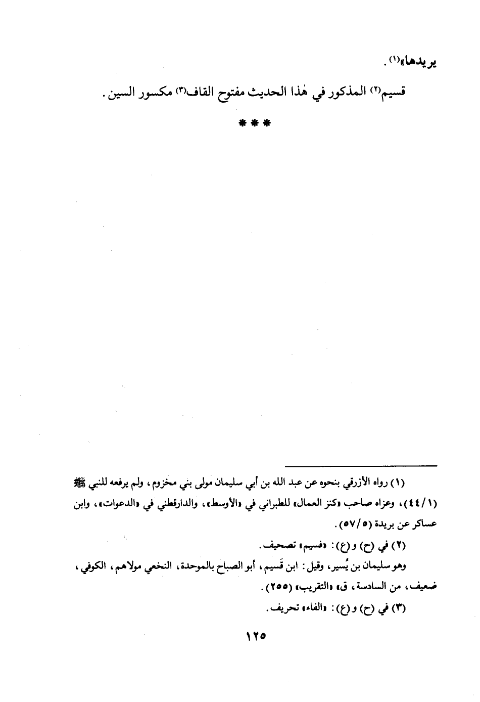 قَسِيمٌ الْمَذْكُورُ فِي هَذَا الْحَدِيثِ مَفْتُوحُ الْقَافِ مَكْسُورُ السِّينِ.
