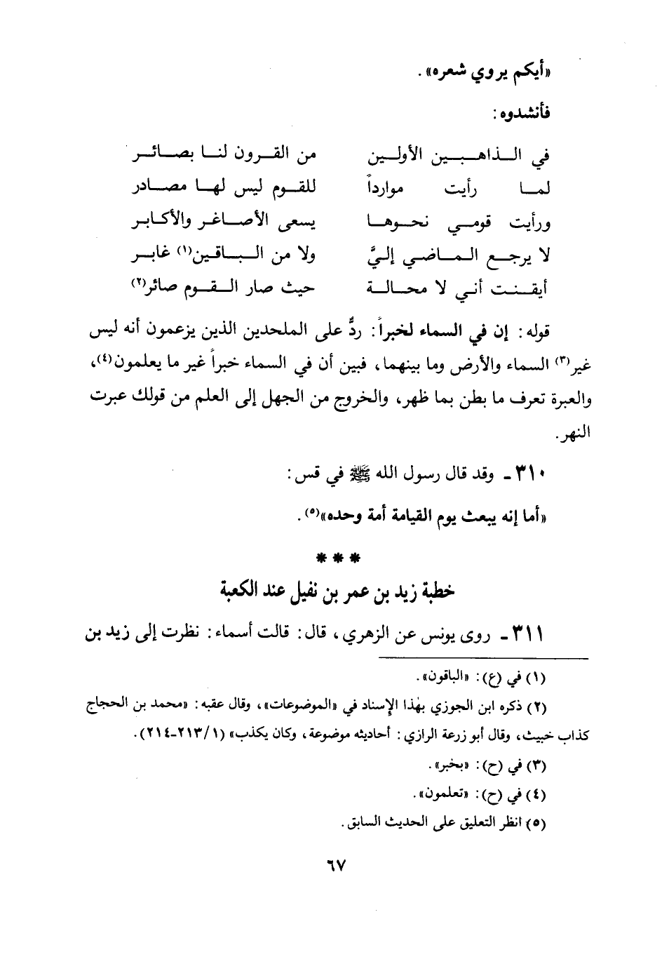 311- روى يونس عن الزهري، قال: قالت أسماء: نظرت على زيد بن
