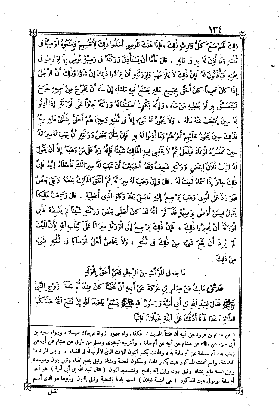 [1456] الثُّلُث وَالثلث كثير قَالَ القَاضِي عِيَاض يجوز نصب الثُّلُث الأول وَرَفعه أما النصب فعلى الإغراء أَو على تَقْدِير فعل أَي أعْط الثُّلُث وَأما الرّفْع فعلى أَنه فَاعل أَي يَكْفِيك الثُّلُث أَو مُبْتَدأ حذف خَبره أَو خبر مَحْذُوف الْمُبْتَدَأ وروى كثير بِالْمُثَلثَةِ وبالموحدة وَكِلَاهُمَا صَحِيح قَالَ بن عبد الْبر هَذَا الحَدِيث أصل للْعُلَمَاء فِي قصر الْوَصِيَّة على الثُّلُث لَا أصل لَهُم غَيره أَن تذر ضبط بِفَتْح الْهمزَة مَصْدَرِيَّة فِي مَوضِع الْمُبْتَدَأ وَخير الْخَبَر وبكسرها شَرْطِيَّة على تَقْدِير فَهُوَ خير عَالَة أَي فُقَرَاء يَتَكَفَّفُونَ النَّاس أَي يَسْأَلُونَهُمْ فِي أكفهم أأخلف بعد أَصْحَابِي أَي بِمَكَّة من أجل مَرضه بعد توجه النَّبِي صلى الله عَلَيْهِ وَسلم وَأَصْحَابه إِلَى الْمَدِينَة وَكَانُوا يكْرهُونَ الْإِقَامَة بهَا لكَوْنهم هَاجرُوا مِنْهَا وتركوها لله لَكِن البائس هُوَ الَّذِي عَلَيْهِ أثر الْبُؤْس سعد بن خَوْلَة هَذَا آخر كَلَام النَّبِي صلى الله عَلَيْهِ وَسلم وَقَوله يرثي لَهُ رَسُول الله صلى الله عَلَيْهِ وَسلم أَن مَاتَ بِمَكَّة مدرج من كَلَام الرَّاوِي تَفْسِيرا لِمَعْنى لهَذَا الْكَلَام أَنه صلى الله عَلَيْهِ وَسلم رثاه بِهِ وتوجع ورق عَلَيْهِ لكَونه مَاتَ بِمَكَّة ثمَّ قيل قَائِله سعد بن أبي وَقاص قَالَ القَاضِي عِيَاض وَأكْثر مَا جَاءَ أَنه من كَلَام الزُّهْرِيّ قَالَ وَاخْتلفُوا فِي قصَّة سعد بن خَوْلَة فَقيل لم يُهَاجر من مَكَّة حَتَّى مَاتَ بهَا وَذكر البُخَارِيّ أَنه هَاجر وَشهد بَدْرًا ثمَّ انْصَرف إِلَى مَكَّة وَمَات بهَا فعلى الأول سَبَب بؤسه عدم هجرته وعَلى الثَّانِي مَوته فِي أَرض هَاجر مِنْهَا وَذَلِكَ مَكْرُوه عِنْدهم قَالَ القَاضِي وروى فِي هَذَا الْبَاب أَن رَسُول الله صلى الله عَلَيْهِ وَسلم خلف مَعَ سعد بن أبي وَقاص رجلا وَقَالَ لَهُ إِن توفّي بِمَكَّة فَلَا تدفنه بهَا