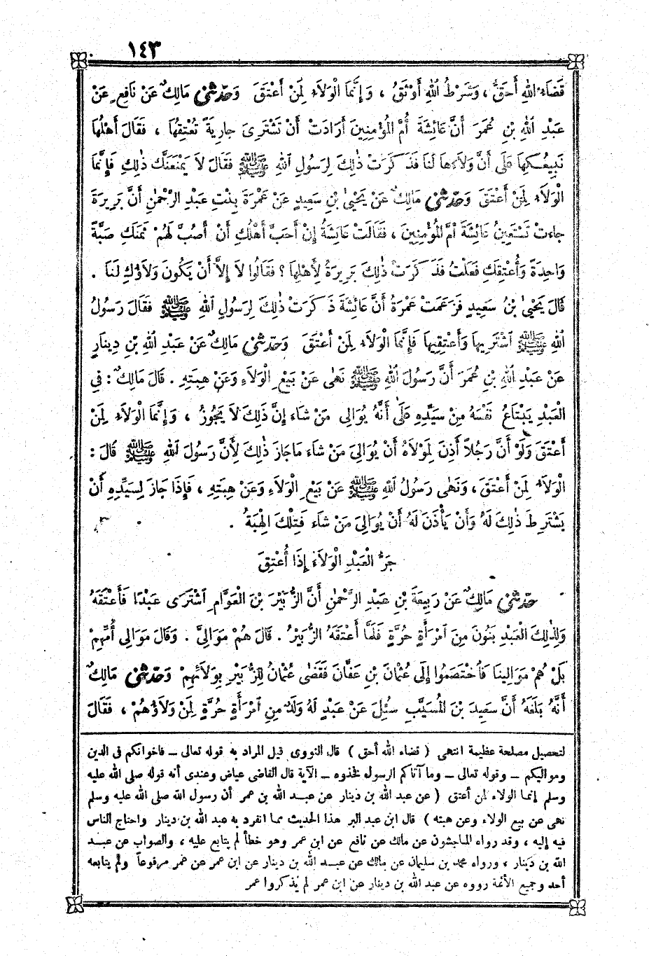 [1477] جَاءَت بَرِيرَة هِيَ حبشية خذيها واشترطي لَهُم الْوَلَاء قَالَ النَّوَوِيّ هَذَا مُشكل من حَيْثُ أَنَّهَا اشترتها واشترطت لَهُم الْوَلَاء وَهَذَا الشَّرْط يفْسد البيع وَمن حَيْثُ أَنَّهَا خدعت البائعين وشرطت لَهُم مَالا يَصح وَلَا يحصل لَهُم وَكَيف أذن لعَائِشَة فِي هَذَا وَلِهَذَا الاشكال أنكر بعض الْعلمَاء هَذَا الحَدِيث بجملته وَهَذَا مَنْقُول عَن يحيى بن أَكْثَم وَاسْتدلَّ بِسُقُوط هَذِه اللَّفْظَة فِي كثير من الرِّوَايَات وَقَالَ جَمَاهِير الْعلمَاء هَذِه اللَّفْظَة صَحِيحَة وَاخْتلفُوا فِي تَأْوِيلهَا فَقَالَ بَعضهم اشترطي هَلُمَّ الْوَلَاء أَي عَلَيْهِم قَالَ تَعَالَى وَلَهُمُ اللَّعْنَةُ يَعْنِي عَلَيْهِم وَقَالَ تَعَالَى إِنْ أَحْسَنْتُمْ أَحْسَنْتُمْ لَأَنْفُسِكُمْ وَإِن أَسَأْتُمْ فَلَهَا أَي فعلَيْهَا وَهَذَا مَنْقُول عَن الشَّافِعِي والمزني وَغَيرهمَا وَضعف بِأَنَّهُ صلى الله عَلَيْهِ وَسلم أنكر عَلَيْهِم الِاشْتِرَاط وَلَو كَانَ كَمَا قَالَه صَاحب هَذَا التَّأْوِيل لم يُنكره وَأجِيب بِأَنَّهُ إِنَّمَا أنكر مَا أَرَادوا اشْتِرَاطه فِي أول الْأَمر وَقيل معنى اشتراطي لَهُم الْوَلَاء أَي أظهري لكم حكم الْوَلَاء وَقيل المُرَاد الزّجر والتوبيخ لَهُم لِأَنَّهُ عَلَيْهِ السَّلَام كَانَ بَين لَهُم حكم الْوَلَاء وَإِن هَذَا الشَّرْط لَا يحل فَلَمَّا لحوا اشْتِرَاطه وَمُخَالفَة الْأَمر قَالَ لعَائِشَة هَذَا الْمَعْنى لَا تبالي بِهِ سَوَاء شَرْطِيَّة أم لَا فَإِنَّهُ شَرط بَاطِل مَرْدُود لِأَنَّهُ قد سبق بَيَانه فعلى هَذَا يكون لَفظه اشترطي هُنَا للْإِبَاحَة وَالأَصَح فِي تَأْوِيل الحَدِيث مَا قَالَه أَصْحَابنَا فِي كتب الْفِقْه أَن هَذَا الشَّرْط خَاص فِي قَضِيَّة عَائِشَة وَاحْتمل هَذَا الْإِذْن وابطاله فِي هَذِه الْقَضِيَّة الْخَاصَّة وَهِي قَضِيَّة عين لَا عُمُوم لَهَا وَالْحكمَة فِي اذنه فِيهِ ثمَّ ابطاله أَن يكون أبلغ فِي قطع عَادَتهم فِي ذَلِك وزجرهم عَن مثله كَمَا أذن لَهُم صلى الله عَلَيْهِ وَسلم فِي الْإِحْرَام بِالْحَجِّ فِي حجَّة الْوَدَاع ثمَّ أَمرهم بفسخه وَجعله عمْرَة بعد أَن أَحْرمُوا بِالْحَجِّ وَإِنَّمَا فعل ذَلِك ليَكُون أبلغ فِي زجرهم وقطعهم عَمَّا اعتادوه من منع الْعمرَة فِي الْحَج فِي أشهر الْحَج وَقد تحْتَمل الْمفْسدَة الْيَسِيرَة لتَحْصِيل مصلحَة عَظِيمَة انْتهى قَضَاء الله أَحَق قَالَ النَّوَوِيّ قيل المُرَاد بِهِ قَوْله تَعَالَى فَإِخْوَانُكُمْ فِي الدِّينِ وَمَوَالِيكُمْ وَقَوله تَعَالَى وَمَا آتَاكُمُ الرَّسُولُ فَخُذُوهُ الْآيَة قَالَ القَاضِي عِيَاض وَعِنْدِي أَنه قَوْله صلى الله عَلَيْهِ وَسلم إِنَّمَا الْوَلَاء لمن أعتق