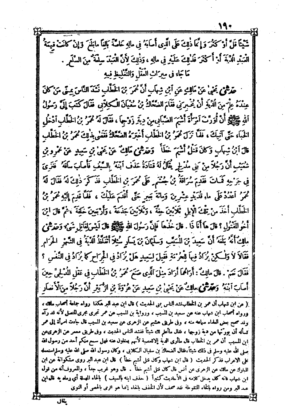 [1556] عَن بن شهَاب أَن عمر بن الْخطاب نَشد النَّاس بمنى الحَدِيث قَالَ بن عبد الْبر هَكَذَا رَوَاهُ جمَاعَة أَصْحَاب مَالك وَرَوَاهُ أَصْحَاب بن شهَاب عَنهُ عَن سعيد بن الْمسيب ورواة بن الْمسيب عَن عمر تجْرِي مجْرى الْمُتَّصِل لِأَنَّهُ قد رَآهُ وَقد صحّح بعض الْعلمَاء سَمَاعه مِنْهُ وَفِي طَرِيق هشيم عَن الزُّهْرِيّ عَن سعيد بن الْمسيب قَالَ جَاءَت امْرَأَة إِلَى عمر تسأله أَن يُورثهَا من دِيَة زَوجهَا فَقَالَ مَا أعلم لَك شَيْئا فنشد النَّاس الحَدِيث وَفِي طَرِيق معمر عَن الزُّهْرِيّ عَن بن الْمسيب أَن عمر بن الْخطاب قَالَ مَا أرى الدِّيَة إِلَّا للْعصبَةِ لأَنهم يعْقلُونَ عَنهُ فَهَل سمع مِنْكُم أحد من رَسُول الله صلى الله عَلَيْهِ وَسلم فِي ذَلِك شَيْئا فَقَالَ الضَّحَّاك بن سُفْيَان الْكلابِي وَكَانَ رَسُول الله صلى الله عَلَيْهِ وَسلم اسْتَعْملهُ على الاعراب فَذكر الحَدِيث قَالَ بن شهَاب وَكَانَ قتل أَشْيَم خطأ قَالَ بن عبد الْبر روى مشكوانة عَن بن الْمُبَارك عَن مَالك عَن الزُّهْرِيّ عَن أنس قَالَ كَانَ قتل أَشْيَم خطأ قَالَ وَهُوَ غَرِيب جدا وَالْمَعْرُوف أَنه من قَول بن شهَاب فَإِنَّهُ كَانَ يدْخل كَلَامه فِي الْأَحَادِيث كثيرا