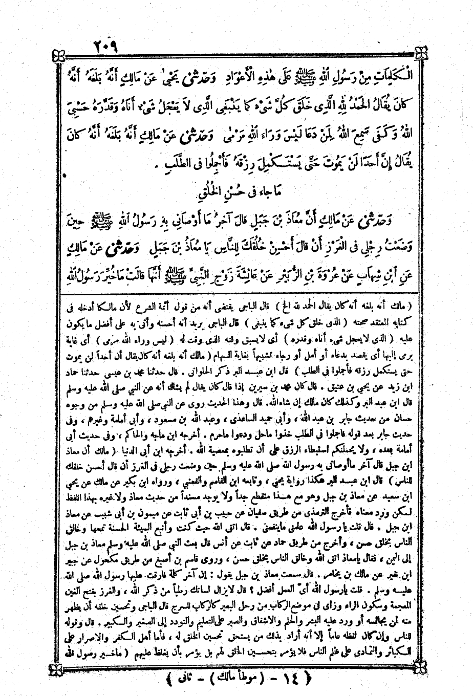 [1602] مَالك أَن معَاذ بن جبل قَالَ آخر مَا أَوْصَانِي بِهِ رَسُول الله صلى الله عَلَيْهِ وَسلم حِين وضعت رجْلي فِي الغرز أَن قَالَ أحسن خلقك للنَّاس قَالَ بن عبد الْبر هَكَذَا رواي يحيى وَتَابعه بن الْقَاسِم والقعنبي وَرَوَاهُ بن بكير عَن مَالك عَن يحيى بن سعيد عَن معَاذ بن جبل وَهُوَ مَعَ هَذَا مُنْقَطع جدا وَلَا يُوجد مُسْندًا من حَدِيث معَاذ وَلَا غَيره بِهَذَا للفظ لَكِن ورد مَعْنَاهُ فَأخْرج التِّرْمِذِيّ من طَرِيق سُفْيَان عَن حبيب بن أبي ثَابت عَن مَيْمُون بن أبي شبيب عَن معَاذ بن جبل قَالَ قلت يَا رَسُول الل عَلمنِي مَا يَنْفَعنِي قَالَ اتَّقِ الله حَيْثُ كنت وأتبع السَّيئَة الْحَسَنَة تمحها وخالق النَّاس بِخلق حسن وَأخرج من طَرِيق حَمَّاد عَن ثَابت عَن أنس قَالَ بعث النَّبِي صلى الله عَلَيْهِ وَسلم معَاذ بن جبل إِلَى الْيمن فَقَالَ يَا معَاذ اتَّقِ الله وخالق النَّاس بِخلق حسن وروى قَاسم بن أصبغ من طَرِيق مَكْحُول عَن جُبَير بن نفير عَن مَالك بن يخَامر قَالَ سَمِعت معَاذ بن جبل يَقُول إِن آخر كلمة فَارَقت عَلَيْهَا رَسُول الله صلى الله عَلَيْهِ وَسلم قلت يَا رَسُول الله أَي الْعَمَل أفضل قَالَ لَا يزَال لسَانك رطبا من ذكر الله والغرز بِفَتْح الْغَيْن الْمُعْجَمَة وَسُكُون الرَّاء وزاي فِي مَوضِع الركاب من رَحل الْبَعِير كالركاب للسرج قَالَ الْبَاجِيّ وتحسين خلقه أيظهر مِنْهُ لمن يجالسه أَو ورد عَلَيْهِ الْبشر والحلم والاشفاق والصب على التَّعْلِيم والتودد إِلَى الصَّغِير وَالْكَبِير قَالَ وَقَوله للنَّاس وَإِن كَانَ لَفظه عَاما إِلَّا أَنه أَرَادَ بذلك من يسْتَحق تَحْسِين الْخلق لَهُ فَأَما أهل الْكفْر والاصرار على الْكَبَائِر والتمادي على ظلم النَّاس فَلَا يُؤمر بتحسين الْخلق لَهُم بل يُؤمر بِأَن يغلظ عَلَيْهِم
