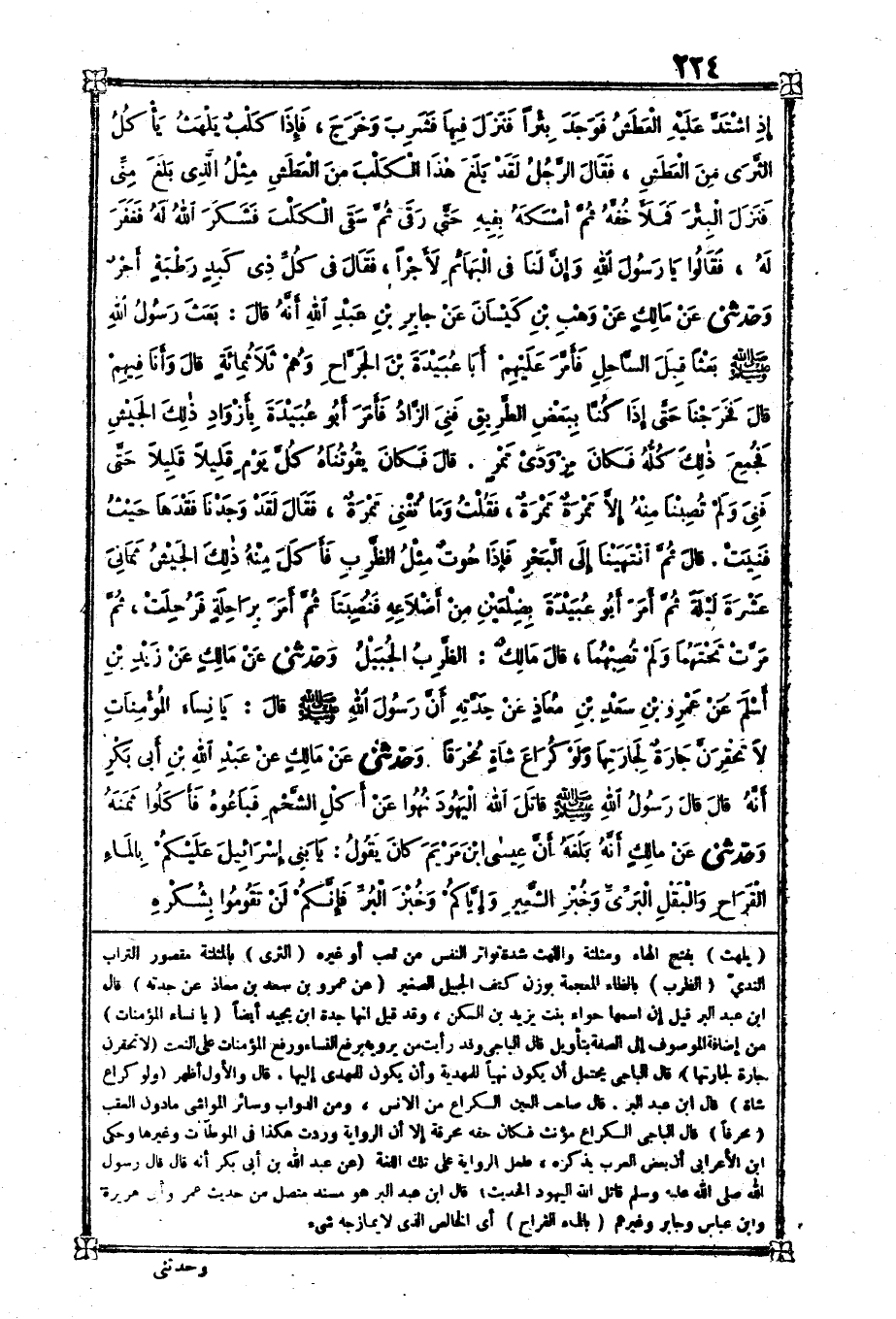 [1663] عَن عَمْرو بن سعد بن معَاذ عَن جدته قَالَ بن عبد الْبر قيل إِن اسْمهَا حَوَّاء بنت يزِيد بن السكن وَقد قيل أَنَّهَا جدة بن بجيد أَيْضا يَا نسَاء الْمُؤْمِنَات من إِضَافَة الْمَوْصُوف إِلَى الصّفة بِتَأْوِيل قَالَ الْبَاجِيّ وَقد رَأَيْت من يرويهِ بِرَفْع النِّسَاء وَرفع الْمُؤْمِنَات على النَّعْت لَا تحقرن جَار لجارتها قَالَ الْبَاجِيّ يحْتَمل أَن يكون نهيا للمهدية وَإِن يكون للمهدي إِلَيْهَا قَالَ وَالْأول أظهر وَلَو كرَاع شَاة قَالَ بن عبد الْبر قَالَ صَاحب الْعين الكراع من الانس وَمن الدَّوَابّ وَسَائِر الْمَوَاشِي مَا دون الْعقب محرقا قَالَ الْبَاجِيّ الكراع مؤنث فَكَانَ حَقه محرقة إِلَّا أَن الرِّوَايَة وَردت هَكَذَا فِي الموطآت وَغَيرهَا وَحكى بن الْأَعرَابِي أَن بعض الْعَرَب يذكرهُ فَلَعَلَّ الرِّوَايَة على تِلْكَ اللُّغَة