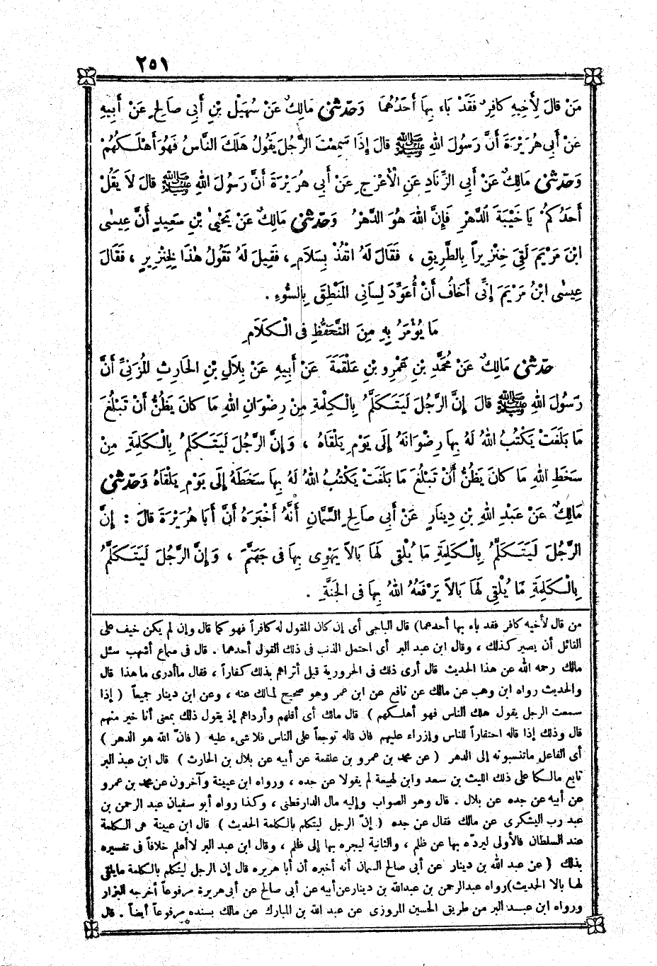[1781] عَن مُحَمَّد بن عمر بن عَلْقَمَة عَن أَبِيه عَن بِلَال بن الْحَارِث قَالَ بن عبد الْبر تَابع مَالِكًا على ذَلِك اللَّيْث بن سعد وَابْن لَهِيعَة لم يَقُولَا عَن جده وَرَوَاهُ بن عُيَيْنَة وَآخَرُونَ عَن مُحَمَّد بن عَمْرو عَن أَبِيه عَن جده عَن بِلَال قَالَ وَهُوَ الصَّوَاب وَإِلَيْهِ مَال الدَّارَقُطْنِيّ وَكَذَا رَوَاهُ أَبُو سُفْيَان عبد الرَّحْمَن بن عبد رب اليشكرى عَن مَالك فَقَالَ عَن جده إِن الرجل ليَتَكَلَّم بِالْكَلِمَةِ الحَدِيث قَالَ بن عُيَيْنَة هِيَ الْكَلِمَة عِنْد السُّلْطَان فَالْأولى ليَرُدهُ بهَا عَن ظلم وَالثَّانيَِة ليجره بهَا إِلَى ظلم وَقَالَ بن عبد الْبر لَا أعلم خلافًا فِي تَفْسِيره بذلك