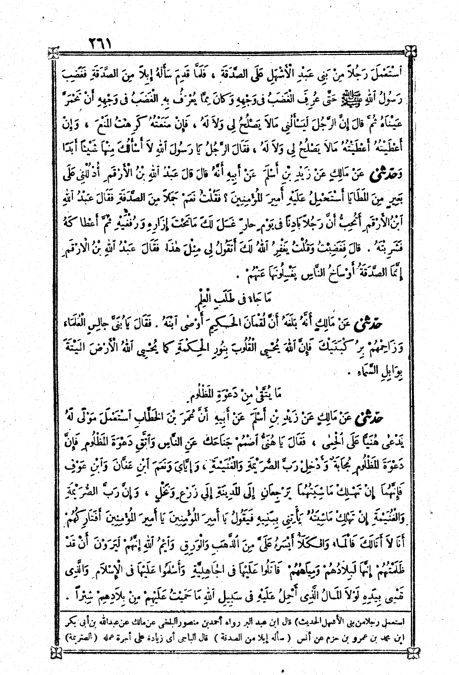 [1819] عَن عبد الله بن أبي بكر عَن أَبِيه أَن رَسُول الله صلى الله عَلَيْهِ وَسلم اسْتعْمل رجلا من بني الْأَشْهَل الحَدِيث قَالَ بن عبد الْبر رَوَاهُ أَحْمد بن مَنْصُور الْبَلْخِي عَن مَالك عَن عبد الله بن أبي بكر بن مُحَمَّد بن عَمْرو بن حزم عَن أنس سَأَلَهُ إبِلا من الصَّدَقَة قَالَ الْبَاجِيّ أَي زِيَادَة على أُجْرَة عمله