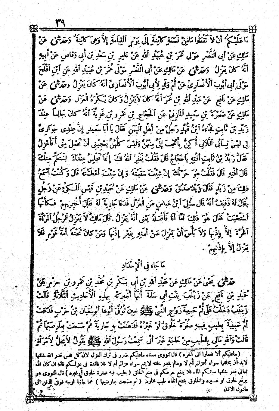 [1239] عَن ربيعَة بن أبي عبد الرَّحْمَن عَن مُحَمَّد بن يحيى بن حبَان عَن بن محيريز اسْمه عبد الله قَالَ بن عبد الْبر وَرِوَايَة ربيعَة عَن مُحَمَّد بن يحيى بن حبَان تدخل فِي بَاب رِوَايَة النظير عَن النظير وَالْكَبِير عَن الصَّغِير قَالَ وَقد روى هَذَا الحَدِيث جوَيْرِية عَن مَالك عَن الزُّهْرِيّ عَن بن محيريز قَالَ وَمَا أَظن أحدا رَوَاهُ عَن مَالك بِهَذَا الْإِسْنَاد غير جوَيْرِية وَكَذَا رَوَاهُ عقيل وَشُعَيْب عَن الزُّهْرِيّ عَن بن محيريز فِي غَزْوَة بني المصطلق قَالَ النَّوَوِيّ غَزْوَة المربسيع قَالَ القَاضِي قَالَ أهل الحَدِيث هَذَا أولى من رِوَايَة مُوسَى بن عقبَة أَنه كَانَ فِي غَزْوَة أَوْطَاس مَا عَلَيْكُم إِلَّا تَفعلُوا إِلَى آخِره قَالَ النَّوَوِيّ مَعْنَاهُ مَا عَلَيْكُم ضَرَر فِي ترك الْعَزْل لِأَن كل نفس قدر الله خلقهَا لابد أَن يخلقها سَوَاء أعزلتم أم لَا وَمَا لم يقدر خلقه لَا يَقع سَوَاء عزلتم أم لَا فَلَا فَائِدَة فِي عزلكم فَإِنَّهُ إِن كَانَ الله تَعَالَى قدر خلقهَا سبقكم المَاء فَلَا ينفع حرصكم فِي منع الْخلق