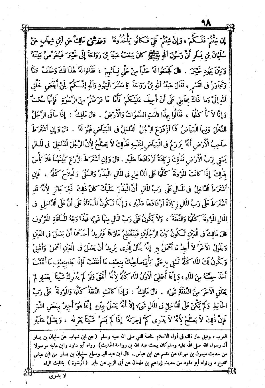 [1387] عَن بن شهَاب عَن سعيد بن الْمسيب أَن رَسُول الله صلى الله عَلَيْهِ وَسلم قَالَ ليهود خَيْبَر الحَدِيث قَالَ بن عبد كَذَا رَوَاهُ مُرْسلا رُوَاة الْمُوَطَّأ وَأَصْحَاب بن شهَاب وَقد وَصله مِنْهُم صَالح بن أبي الْأَخْضَر عَن بن شهَاب عَن سعيد بن الْمسيب عَن أبي هُرَيْرَة أقركم فِيهَا مَا أقركم الله قَالَ النَّوَوِيّ اسْتدلَّ بِهِ من جوز الْمُسَاقَاة مُدَّة مَجْهُولَة وتأوله الْجُمْهُور على أَنه عَائِد إِلَى مُدَّة الْعَهْد لِأَنَّهُ صلى الله عَلَيْهِ وَسلم كَانَ عَازِمًا على إِخْرَاج الْكفَّار من جَزِيرَة الْعَرَب وَقيل جَازَ ذَلِك فِي أول الْإِسْلَام خَاصَّة للنَّبِي صلى الله عَلَيْهِ وَسلم