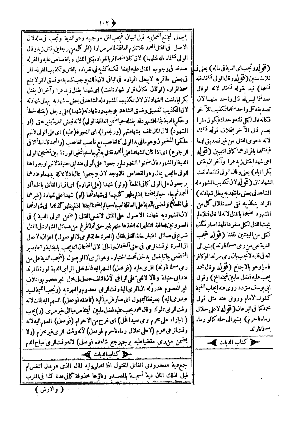 (كِتَابُ الدِّيَاتِ) جَمْعُ دِيَةٍ مَصْدَرُ وَدَى الْقَاتِلُ الْمَقْتُولَ إذَا أَعْطَى وَلِيَّهُ الْمَالَ الَّذِي هُوَ بَدَلُ النَّفْسِ ثُمَّ قِيلَ لِذَلِكَ الْمَالِ دِيَةٌ تَسْمِيَةً بِالْمَصْدَرِ وَفَاؤُهَا مَحْذُوفَةٌ كَمَا فِي عِدَةٍ كَذَا فِي الْمُغْرِبِ