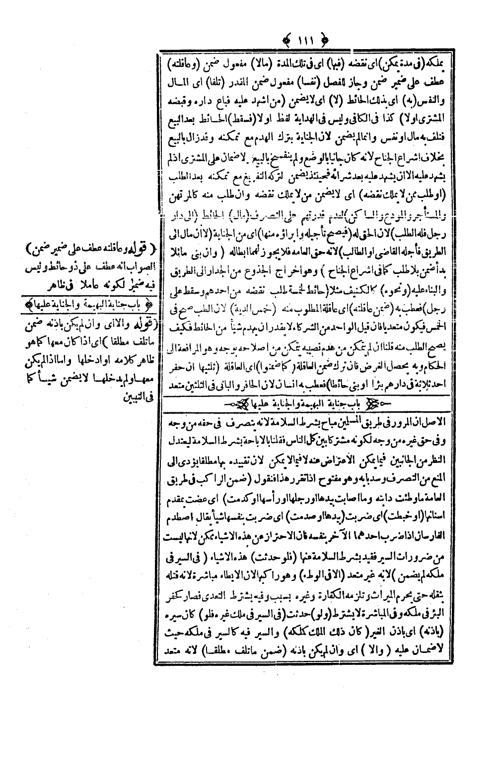 [بَابُ جِنَايَةِ الْبَهِيمَةِ وَالْجِنَايَةِ عَلَيْهَا]