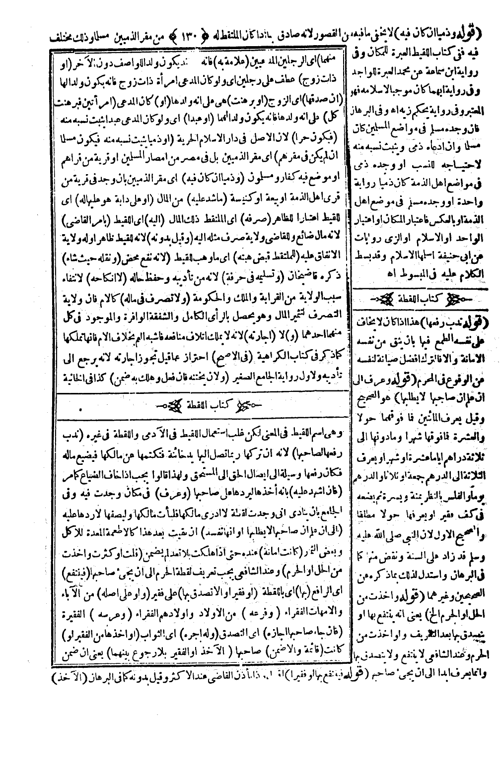 (كِتَابُ اللُّقَطَةِ) (قَوْلُهُ نُدِبَ رَفْعُهَا) هَذَا إذَا كَانَ لَا يَخَافُ عَلَى نَفْسِهِ الطَّمَعَ فِيهَا بِأَنْ يَثِقَ مِنْ نَفْسِهِ الْأَمَانَةَ وَإِلَّا فَالتَّرْكُ أَفْضَلُ صِيَانَةً لِنَفْسِهِ عَنْ الْوُقُوعِ فِي الْمُحَرَّمِ (قَوْلُهُ وَعَرَّفَ إلَى أَنْ عَلِمَ أَنَّ صَاحِبَهَا لَا يَطْلُبُهَا) هُوَ الصَّحِيحُ وَقِيلَ يُعَرِّفُ الْمِائَتَيْنِ فَمَا فَوْقَهُمَا حَوْلًا وَالْعَشَرَةَ فَمَا فَوْقَهَا شَهْرًا وَمَا دُونَهَا إلَى ثَلَاثَةِ دَرَاهِمَ أَيَّامًا عَشَرَةً أَوْ شَهْرًا وَيُعَرِّفُ الثَّلَاثَةَ إلَى الدِّرْهَمِ جُمُعَةً أَوْ ثَلَاثًا وَالدِّرْهَمَ يَوْمًا وَالْفَلْسَ بِالنَّظَرِ يَمْنَةً وَيَسْرَةً، ثُمَّ يَضَعُهُ فِي كَفِّ فَقِيرٍ أَوْ يُعَرِّفُهَا حَوْلًا مُطْلَقًا وَالصَّحِيحُ الْأَوَّلُ؛ لِأَنَّ النَّبِيَّ - صَلَّى اللَّهُ عَلَيْهِ وَسَلَّمَ - قَدْ زَادَ عَلَى السَّنَةِ وَنَقَصَ مِنْهَا كَمَا فِي الْبُرْهَانِ وَاسْتَدَلَّ لِذَلِكَ بِمَا ذَكَرَهُ عَنْ الصَّحِيحَيْنِ وَغَيْرِهِمَا (قَوْلُهُ وَأُخِذَتْ مِنْ الْحِلِّ أَوْ الْحَرَمِ. . . إلَخْ) يَعْنِي أَنَّهُ يَنْتَفِعُ بِهَا أَوْ يَتَصَدَّقُ بِهَا بَعْدَ التَّعْرِيفِ، وَلَوْ أُخِذَتْ مِنْ الْحَرَمِ وَعِنْدَ الشَّافِعِيِّ لَا يَنْتَفِعُ وَلَا يَتَصَدَّقُ بِهَا، وَإِنَّمَا يُعَرِّفُ أَبَدًا إلَى أَنْ يَجِيءَ صَاحِبُهَا (قَوْلُهُ فَيَنْتَفِعُ بِهَا لَوْ فَقِيرًا) أَقُولُ وَذَا بِإِذْنِ الْقَاضِي عِنْدَ الْأَكْثَرِ وَقِيلَ بِدُونِهِ كَمَا فِي الْبُرْهَانِ