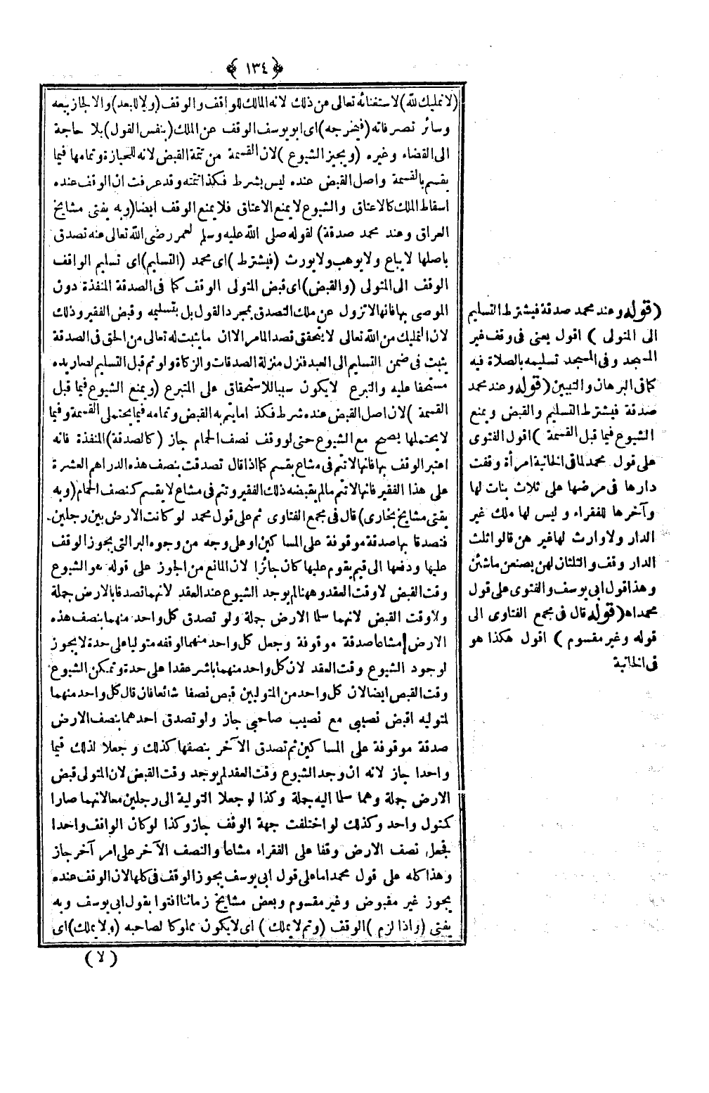 ـــــــــــــــــــــــــــــQقَوْلُهُ وَعِنْدَ مُحَمَّدٍ صَدَقَةٌ فَيَشْتَرِطُ التَّسْلِيمَ إلَى الْمُتَوَلِّي) أَقُولُ يَعْنِي فِي وَقْفِ غَيْرِ الْمَسْجِدِ وَفِي الْمَسْجِدِ تَسْلِيمُهُ الصَّلَاةُ فِيهِ كَمَا فِي الْبُرْهَانِ وَالتَّبْيِينِ (قَوْلُهُ وَعِنْدَ مُحَمَّدٍ صَدَقَةٌ فَيَشْتَرِطُ التَّسْلِيمَ وَالْقَبْضَ وَيَمْنَعُ الشُّيُوعَ فِيمَا قَبِلَ الْقِسْمَةَ) أَقُولُ الْفَتْوَى عَلَى قَوْلِ مُحَمَّدٍ لِمَا فِي الْخَانِيَّةِ امْرَأَةٌ وَقَفَتْ دَارَهَا فِي مَرَضِهَا عَلَى ثَلَاثِ بَنَاتٍ لَهَا وَآخِرَهَا لِلْفُقَرَاءِ وَلَيْسَ لَهَا مِلْكٌ غَيْرَ الدَّارِ وَلَا وَارِثَ لَهَا غَيْرُهُنَّ قَالُوا ثُلُثُ الدَّارِ وَقْفٌ وَالثُّلُثَانِ لَهُنَّ يَصْنَعْنَ مَا شِئْنَ وَهَذَا قَوْلُ أَبِي يُوسُفَ وَالْفَتْوَى عَلَى قَوْلِ مُحَمَّدٍ اهـ.