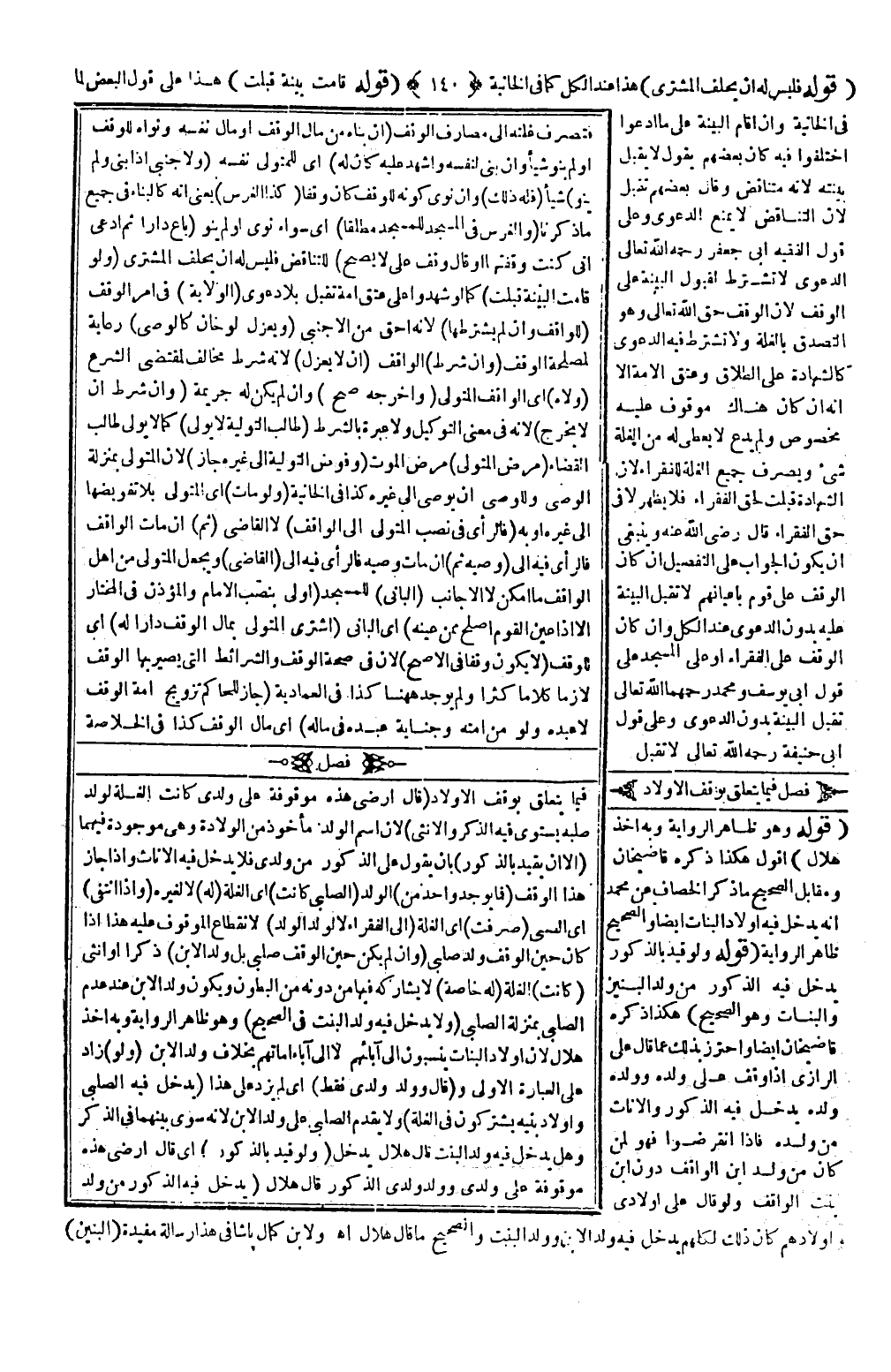 (فَصْلٌ فِيمَا يَتَعَلَّقُ بِوَقْفِ الْأَوْلَادِ) (قَوْلُهُ وَهُوَ ظَاهِرُ الرِّوَايَةِ وَبِهِ أَخَذَ هِلَالٌ) أَقُولُ هَكَذَا ذَكَرَهُ قَاضِي خَانْ وَمُقَابِلُ الصَّحِيحِ مَا ذَكَرَ الْخَصَّافُ عَنْ مُحَمَّدٍ أَنَّهُ يَدْخُلُ فِيهِ أَوْلَادُ الْبَنَاتِ أَيْضًا وَالصَّحِيحُ ظَاهِرُ الرِّوَايَةِ (قَوْلُهُ وَلَوْ قَيَّدَ بِالذُّكُورِ يَدْخُلُ فِيهِ الذُّكُورُ مِنْ وَلَدِ الْبَنِينَ وَالْبَنَاتِ وَهُوَ الصَّحِيحُ) هَكَذَا ذَكَرَهُ قَاضِي خَانْ أَيْضًا وَاحْتَرَزَ بِذَلِكَ عَمَّا قَالَ عَلِيٌّ الرَّازِيّ إذَا وَقَفَ عَلَى وَلَدِهِ وَوَلَدِ وَلَدِهِ يَدْخُلُ فِيهِ الذُّكُورُ وَالْإِنَاثُ مِنْ وَلَدِهِ فَإِذَا انْقَرَضُوا فَهُوَ لِمَنْ كَانَ مِنْ وَلَدِ ابْنِ الْوَاقِفِ دُونَ ابْنِ بِنْتِ الْوَاقِفِ، وَلَوْ قَالَ عَلَى أَوْلَادِي وَأَوْلَادِهِمْ كَانَ ذَلِكَ لِكُلِّهِمْ يَدْخُلُ فِيهِ وَلَدُ الِابْنِ وَوَلَدُ الْبِنْتِ وَالصَّحِيحُ مَا قَالَ هِلَالٌ. اهـ.