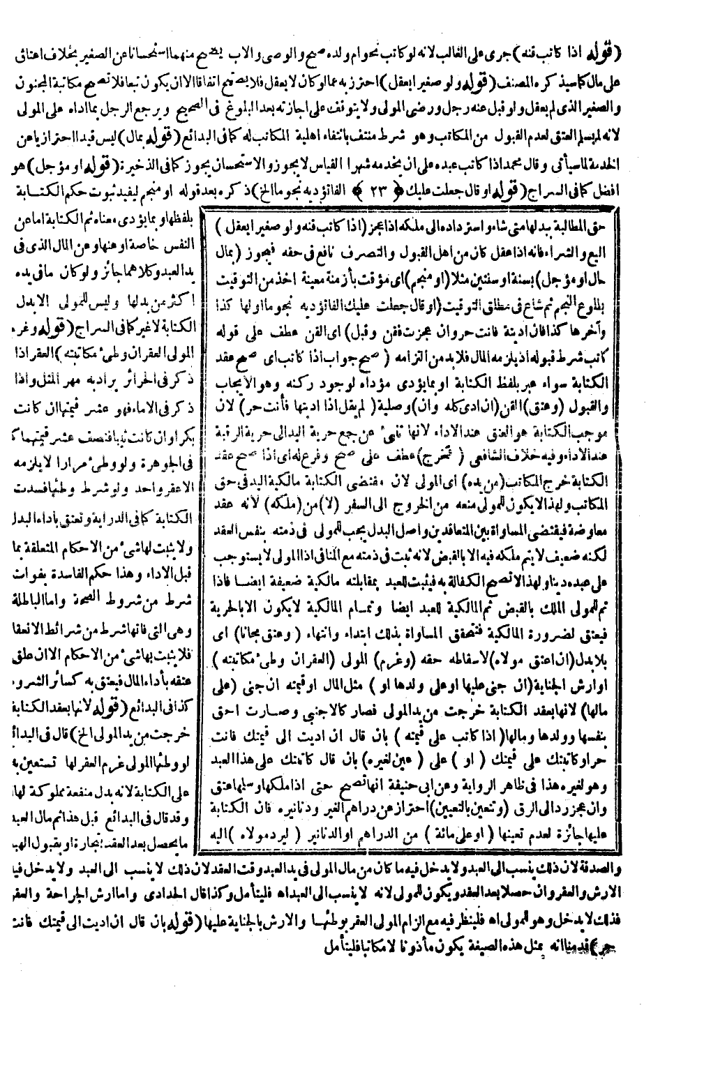 (إذَا كَاتَبَ قِنَّهُ وَلَوْ صَغِيرًا يَعْقِلُ) الْبَيْعَ وَالشِّرَاءَ فَإِنَّهُ إذَا عَقَلَ كَانَ مِنْ أَهْلِ الْقَبُولِ وَالتَّصَرُّفُ نَافِعٌ فِي حَقِّهِ فَيَجُوزُ (بِمَالٍ حَالٍّ أَوْ مُؤَجَّلٍ) بِسَنَةٍ أَوْ سَنَتَيْنِ مَثَلًا (أَوْ مُنَجَّمٍ) أَيْ مُؤَقَّتٍ بِأَزْمِنَةٍ مُعَيَّنَةٍ، أُخِذَ مِنْ التَّوْقِيتِ بِطُلُوعِ النَّجْمِ ثُمَّ شَاعَ فِي مُطْلَقِ التَّوْقِيتِ (أَوْ قَالَ جَعَلْت عَلَيْك أَلْفًا تُؤَدِّيهِ نُجُومًا أَوَّلُهَا كَذَا وَآخِرُهَا كَذَا فَإِنْ أَدَّيْته فَأَنْتَ حُرٌّ وَإِنْ عَجَزْت فَقِنٌّ وَقَبِلَ) أَيْ الْقِنُّ عَطْفٌ عَلَى قَوْلِهِ كَاتَبَ شُرِطَ قَبُولُهُ إذْ يَلْزَمُهُ الْمَالُ فَلَا بُدَّ مِنْ الْتِزَامِهِ (صَحَّ) جَوَابُ إذَا كَاتِب أَيْ صَحَّ عَقْدُ الْكِتَابَةِ سَوَاءٌ عَبَّرَ بِلَفْظِ الْكِتَابَةِ أَوْ بِمَا يُؤَدِّي مُؤَدَّاهُ لِوُجُودِ رُكْنِهِ وَهُوَ الْإِيجَابُ، وَالْقَبُولُ (وَعَتَقَ) الْقِنُّ (إنْ أَدَّى كُلَّهُ وَإِنْ) وَصْلِيَّةٌ (لَمْ يَقُلْ إذَا أَدَّيْتهَا فَأَنْتَ حُرٌّ) ؛ لِأَنَّ مُوجَبَ الْكِتَابَةِ هُوَ الْعِتْقُ عَنْ الْأَدَاءِ؛ لِأَنَّهَا تُنْبِئُ عَنْ جَمْعِ حُرِّيَّةِ الْيَدِ إلَى حُرِّيَّةِ الرَّقَبَةِ عِنْدَ الْأَدَاءِ وَفِيهِ خِلَافُ الشَّافِعِيِّ (فَخَرَجَ) عَطْفٌ عَلَى صَحَّ وَفَرَعٌ لَهُ أَيْ إذَا صَحَّ عَقْدُ الْكِتَابَةِ خَرَجَ الْمُكَاتَبُ (مِنْ يَدِهِ) أَيْ الْمَوْلَى؛ لِأَنَّ مُقْتَضَى الْكِتَابَةِ مَالِكِيَّةُ الْيَدِ فِي حَقِّ الْمُكَاتَبِ وَلِهَذَا لَا يَكُونُ لِلْمَوْلَى مَنْعُهُ مِنْ الْخُرُوجِ إلَى السَّفَرِ (لَا) مِنْ (مِلْكِهِ) ؛ لِأَنَّهُ عَقْدُ مُعَاوَضَةٍ فَيَقْتَضِي الْمُسَاوَاةَ بَيْنَ الْمُتَعَاقِدَيْنِ وَأَصْلُ الْبَدَلِ يَجِبُ لِلْمَوْلَى فِي ذِمَّتِهِ بِنَفْسِ الْعَقْدِ لَكِنَّهُ ضَعِيفٌ لَا يَتِمُّ مِلْكُهُ فِيهِ إلَّا بِالْقَبْضِ؛ لِأَنَّهُ ثَبَتَ فِي ذِمَّتِهِ مَعَ الْمُنَافِي إذْ الْمَوْلَى لَا يَسْتَوْجِبُ عَلَى عَبْدِهِ دَيْنًا وَلِهَذَا لَا تَصِحُّ الْكَفَالَةُ بِهِ فَيَثْبُتُ لِلْعَبْدِ بِمُقَابَلَتِهِ مَالِكِيَّةٌ ضَعِيفَةٌ أَيْضًا فَإِذَا تَمَّ لِلْمَوْلَى الْمِلْكُ بِالْقَبْضِ تَمَّ الْمَالِكِيَّةُ لِلْعَبْدِ أَيْضًا، وَتَمَامُ الْمَالِكِيَّةِ لَا يَكُونُ إلَّا بِالْحُرِّيَّةِ فَيَعْتِقُ لِضَرُورَةِ الْمَالِكِيَّةِ فَتَتَحَقَّقُ الْمُسَاوَاةُ بِذَلِكَ ابْتِدَاءً وَانْتِهَاءً (وَعَتَقَ مَجَّانًا) أَيْ بِلَا بَدَلٍ (إنْ أَعْتَقَ مَوْلَاهُ) لِإِسْقَاطِهِ حَقَّهُ (وَغَرِمَ) الْمَوْلَى (الْعُقْرَ إنْ وَطِئَ مُكَاتَبَتَهُ) أَوْ أَرْشَ الْجِنَايَةِ (إنْ جَنَى عَلَيْهَا أَوْ عَلَى وَلَدِهَا أَوْ) مِثْلُ الْمَالِ أَوْ قِيمَتِهِ إنْ جَنَى (عَلَى مَالِهَا) ؛ لِأَنَّهَا بِعَقْدِ الْكِتَابَةِ خَرَجَتْ مِنْ يَدِ الْمَوْلَى فَصَارَ كَالْأَجْنَبِيِّ وَصَارَتْ أَحَقَّ بِنَفْسِهَا وَوَلَدِهَا وَمَالِهَا.