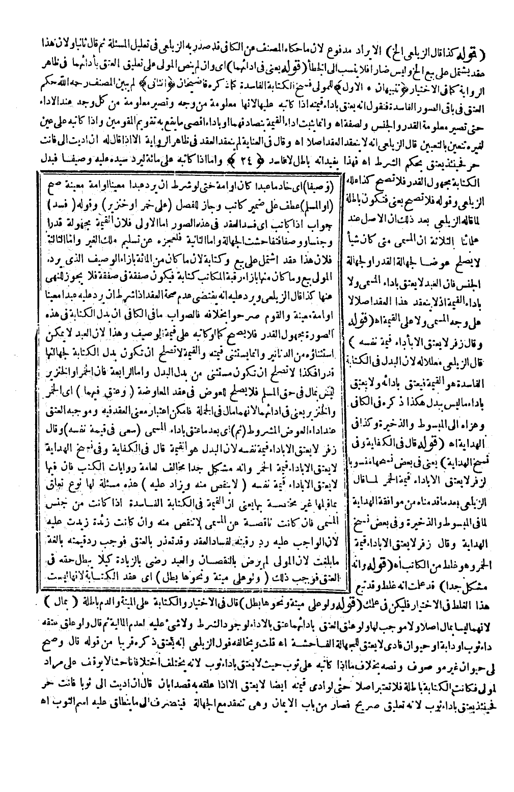 (قَوْلُهُ: قَالَ فِي الْكِفَايَةِ وَفِي نُسَخِ الْهِدَايَةِ) يَعْنِي فِي بَعْضِ نُسَخِهَا مَنْسُوبًا لِزُفَرَ لَا يَعْتِقُ إلَّا بِأَدَاءِ قِيمَةِ الْخَمْرِ لِمَا قَالَ الزَّيْلَعِيُّ بَعْدَ مَا قَدَّمْنَاهُ مِنْ مُوَافَقَةِ الْهِدَايَةِ لِمَا فِي الْمَبْسُوطِ، وَالذَّخِيرَةِ وَفِي بَعْضِ نُسَخِ الْهِدَايَةِ وَقَالَ زُفَرُ: لَا يَعْتِقُ إلَّا بِأَدَاءِ قِيمَةِ الْخَمْرِ وَهُوَ غَلَطٌ مِنْ الْكَاتِبِ. اهـ.