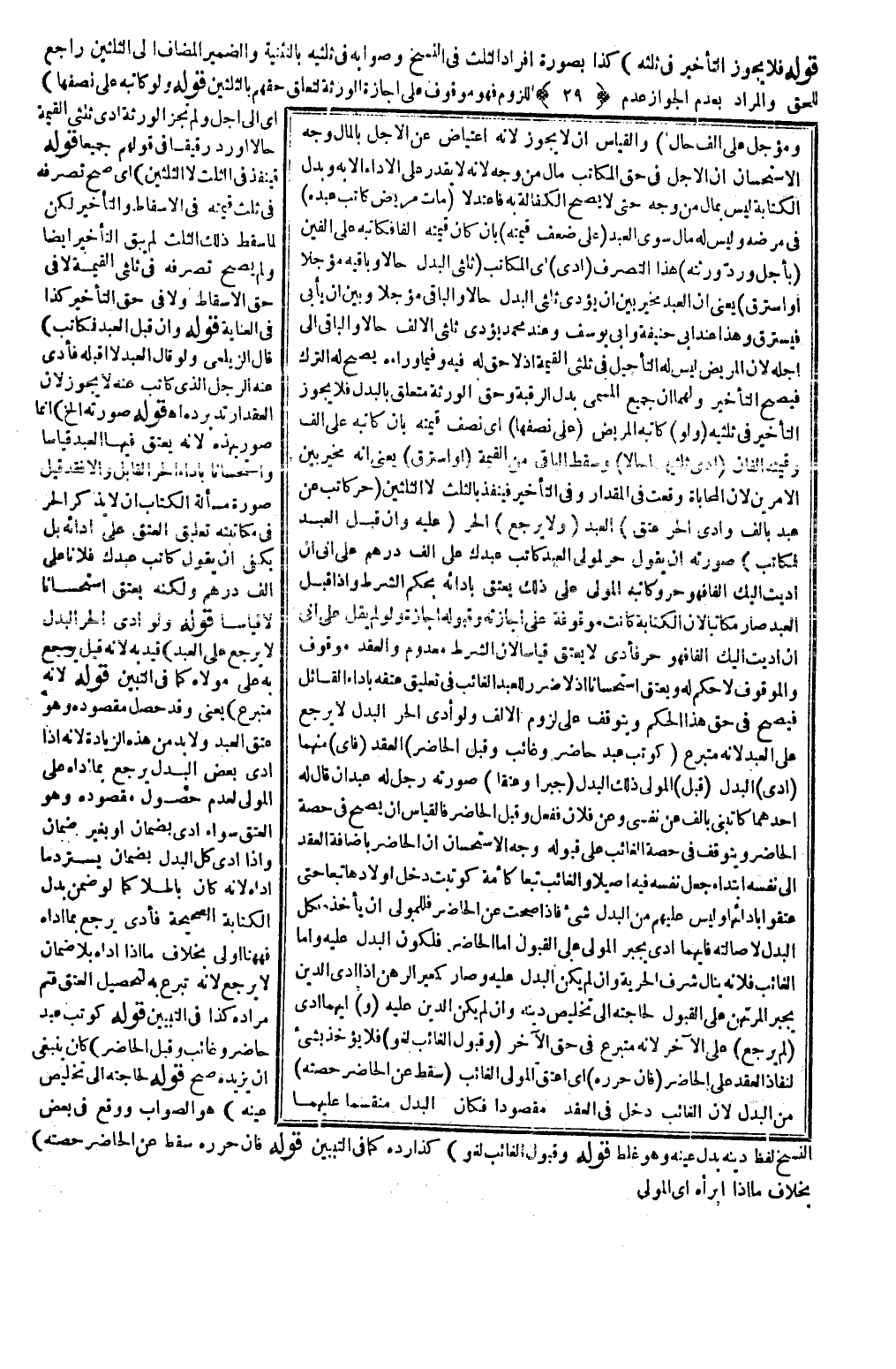 ـــــــــــــــــــــــــــــQقَوْلُهُ: فَلَا يَجُوزُ التَّأْخِيرُ فِي ثُلُثِهِ) كَذَا بِصُورَةِ إفْرَادِ الثُّلُثِ فِي النُّسَخِ وَصَوَابُهُ فِي ثُلُثَيْهِ بِالتَّثْنِيَةِ، وَالضَّمِيرُ الْمُضَافُ إلَى الثُّلُثَيْنِ رَاجِعٌ لِلْحَقِّ، وَالْمُرَادُ بِعَدَمِ الْجَوَازِ عَدَمُ اللُّزُومِ فَهُوَ مَوْقُوفٌ عَلَى إجَازَةِ الْوَرَثَةِ لِتَعَلُّقِ حَقِّهِمْ بِالثُّلُثَيْنِ (قَوْلُهُ: وَلَوْ كَاتَبَهُ عَلَى نِصْفِهَا) أَيْ إلَى أَجَلٍ وَلَمْ تُجِزْ الْوَرَثَةُ أَدَّى ثُلُثَيْ الْقِيمَةِ حَالًّا أَوْ رُدَّ رَقِيقًا فِي قَوْلِهِمْ جَمِيعًا (قَوْلُهُ: فَيَنْفُذُ فِي الثُّلُثِ لَا الثُّلُثَيْنِ) أَيْ صَحَّ تَصَرُّفُهُ فِي ثُلُثِ قِيمَتِهِ فِي الْإِسْقَاطِ، وَالتَّأْخِيرِ لَكِنْ لَمَّا سَقَطَ ذَلِكَ الثُّلُثُ لَمْ يَبْقَ التَّأْخِيرُ أَيْضًا وَلَمْ يَصِحَّ تَصَرُّفُهُ فِي ثُلُثَيْ الْقِيمَةِ لَا فِي حَقِّ الْإِسْقَاطِ وَلَا فِي حَقِّ التَّأْخِيرِ، كَذَا فِي الْعِنَايَةِ.