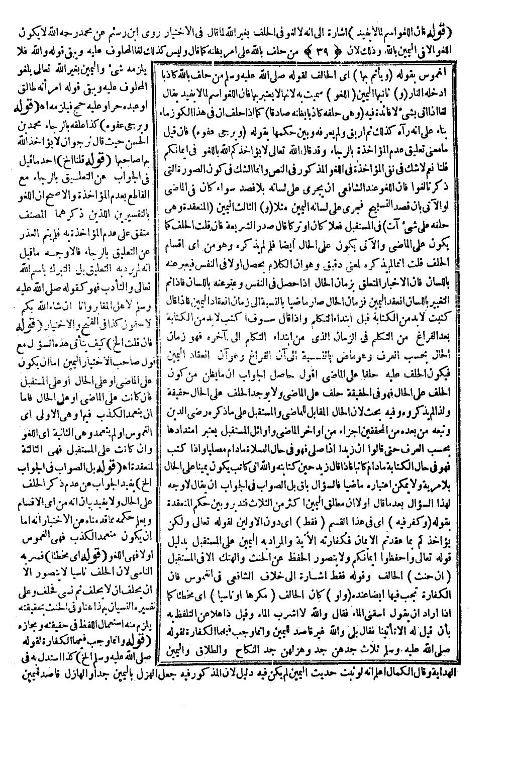 ـــــــــــــــــــــــــــــQقَوْلُهُ: فَإِنَّ اللَّغْوَ اسْمٌ لِمَا لَا يُفِيدُ) إشَارَةٌ إلَى أَنَّهُ لَا لَغْوَ فِي الْحَلِفِ بِغَيْرِ اللَّهِ لِمَا قَالَ فِي الِاخْتِيَارِ، رَوَى ابْنُ رُسْتُمَ عَنْ مُحَمَّدٍ - رَحِمَهُ اللَّهُ -: لَا يَكُونُ اللَّغْوُ إلَّا فِي الْيَمِينِ بِاَللَّهِ وَذَلِكَ؛ لِأَنَّ مَنْ حَلَفَ بِاَللَّهِ عَلَى أَمْرٍ يَظُنُّهُ كَمَا قَالَ وَلَيْسَ كَذَلِكَ لَغَا الْمَحْلُوفُ عَلَيْهِ، وَيَبْقَى قَوْلُهُ: وَاَللَّهِ فَلَا يَلْزَمُهُ شَيْءٌ، وَالْيَمِينُ بِغَيْرِ اللَّهِ تَعَالَى يَلْغُو الْمَحْلُوفَ عَلَيْهِ وَيَبْقَى قَوْلُهُ: امْرَأَتُهُ طَالِقٌ أَوْ عَبْدُهُ حُرٌّ وَعَلَيْهِ حَجٌّ فَيَلْزَمُهُ اهـ.