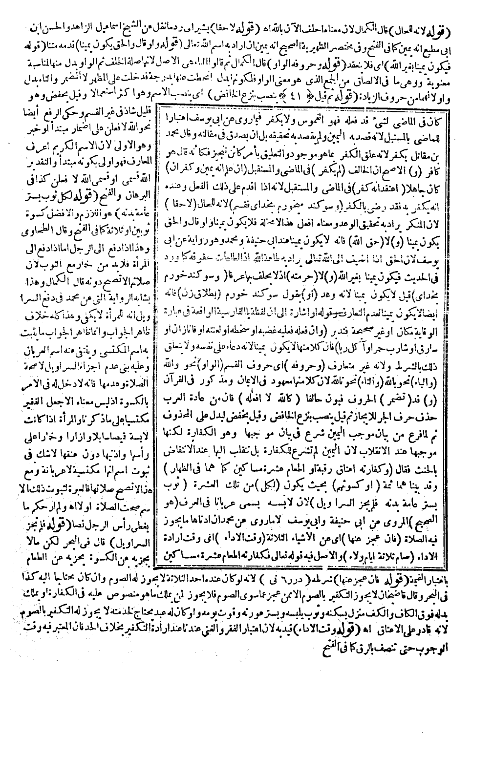 وَقَالَ مُحَمَّدُ بْنُ مُقَاتِلٍ: يَكْفُرُ؛ لِأَنَّهُ عَلَّقَ الْكُفْرَ بِمَا هُوَ مَوْجُودٌ، وَالتَّعْلِيقُ بِأَمْرٍ كَائِنٍ تَنْجِيزٌ فَكَأَنَّهُ قَالَ: هُوَ كَافِرٌ (وَ) الْأَصَحُّ أَنَّ الْحَالِفَ (لَمْ يَكْفُرْ) فِي الْمَاضِي، وَالْمُسْتَقْبَلِ (إنْ عَلِمَ أَنَّهُ يَمِينٌ وَكَفَرَ إنْ) كَانَ جَاهِلًا (اعْتَقَدَ أَنَّهُ كُفْرٌ) فِي الْمَاضِي، وَالْمُسْتَقْبَلِ؛ لِأَنَّهُ إذَا أَقْدَمَ عَلَى ذَلِكَ الْفِعْلِ وَعِنْدَهُ أَنَّهُ يَكْفُرُ بِهِ فَقَدْ رَضِيَ بِالْكُفْرِ (وسوكند ميخورم بخداي فَقَسَمٌ) ؛ لِأَنَّهُ لِلْحَالِ (لَاحِقًا) ؛ لِأَنَّ الْمُنَكَّرَ يُرَادُ بِهِ تَحْقِيقُ الْوَعْدِ وَمَعْنَاهُ أَفْعَلُ هَذَا لَا مَحَالَةَ فَلَا يَكُونُ يَمِينًا، وَلَوْ قَالَ: وَالْحَقِّ يَكُونُ يَمِينًا.