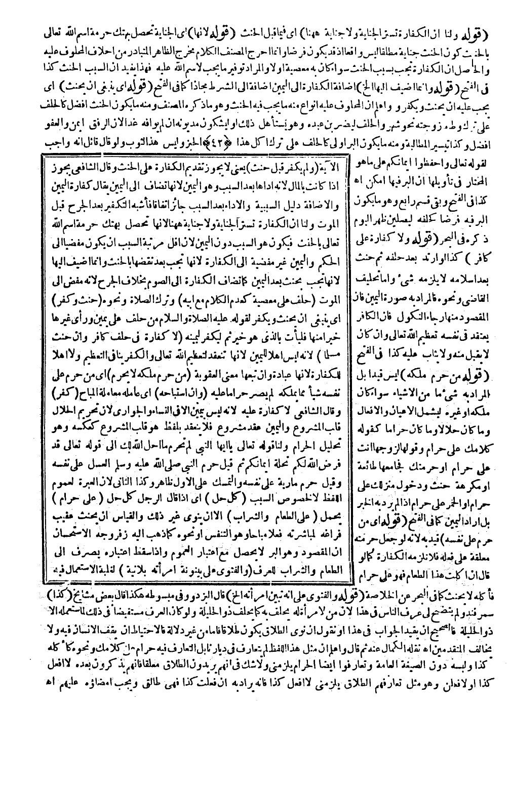 (كُلُّ حِلٍّ) أَيْ إذَا قَالَ الرَّجُلُ: كُلُّ حِلٍّ (عَلَيَّ حَرَامٌ) يُحْمَلُ (عَلَى الطَّعَامِ وَالشَّرَابِ) إلَّا أَنْ يَنْوِيَ غَيْرَ ذَلِكَ، وَالْقِيَاسُ أَنْ يَحْنَثَ عَقِيبَ فَرَاغِهِ لِمُبَاشَرَتِهِ فِعْلًا مُبَاحًا وَهُوَ التَّنَفُّسُ أَوْ نَحْوُهُ كَمَا ذَهَبَ إلَيْهِ زُفَرُ وَجْهُ الِاسْتِحْسَانِ أَنَّ الْمَقْصُودَ وَهُوَ الْبِرُّ لَا يَحْصُلُ مَعَ اعْتِبَارِ الْعُمُومِ وَإِذَا سَقَطَ اعْتِبَارُهُ يُصْرَفُ إلَى الطَّعَامِ وَالشَّرَابِ لِلْعُرْفِ (وَالْفَتْوَى عَلَى بَيْنُونَةِ امْرَأَتِهِ بِلَا نِيَّةٍ) لِغَلَبَةِ الِاسْتِعْمَالِ فِيهِ