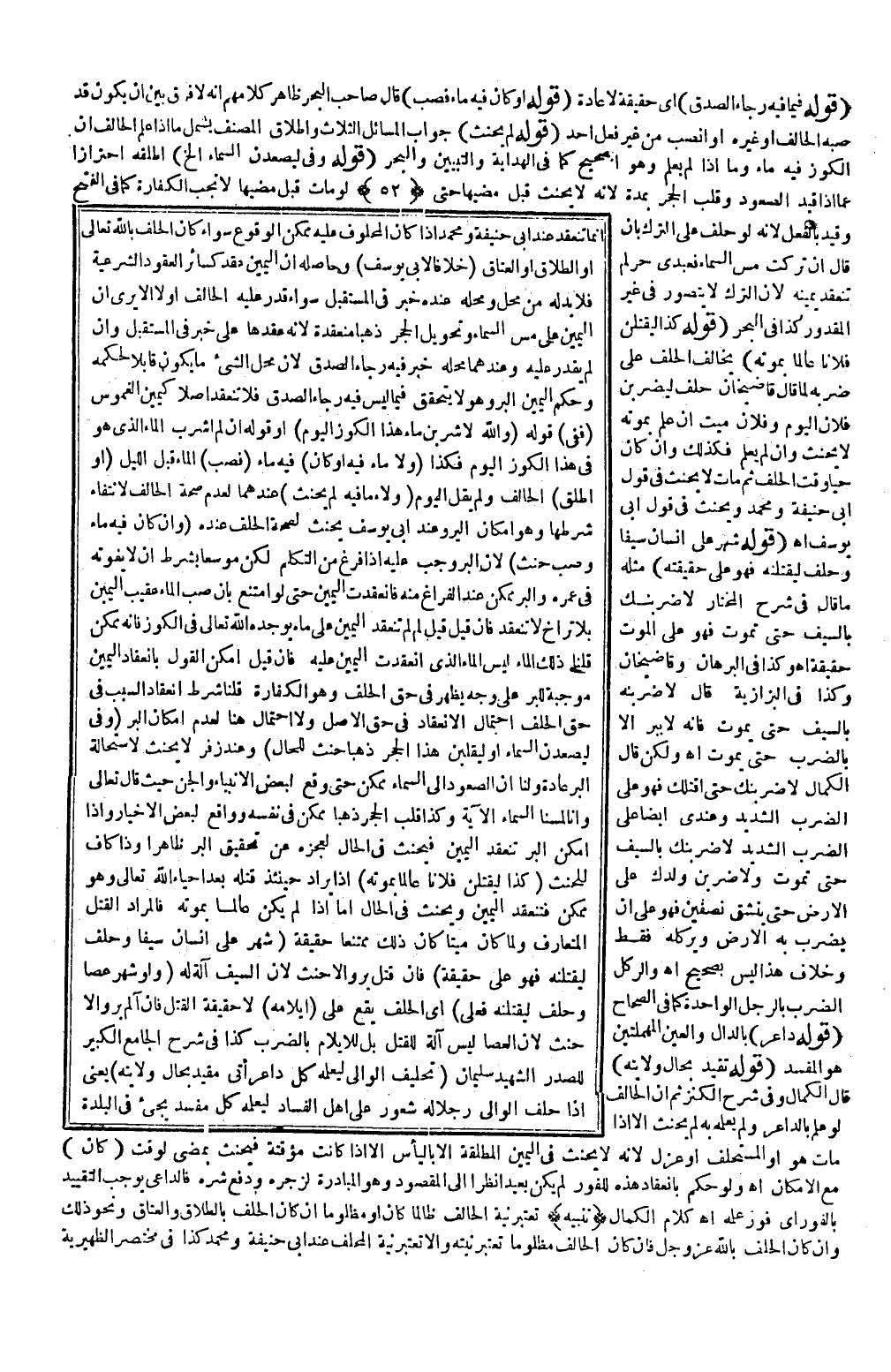 ـــــــــــــــــــــــــــــQقَوْلُهُ فِيمَا فِيهِ رَجَاءُ الصِّدْقِ) أَيْ حَقِيقَةً لَا عَادَةً (قَوْلُهُ أَوْ كَانَ فِيهِ مَاءٌ فَصُبَّ) قَالَ صَاحِبُ الْبَحْرِ ظَاهِرُ كَلَامِهِمْ أَنَّهُ لَا فَرْقَ بَيْنَ أَنْ يَكُونَ قَدْ صَبَّهُ الْحَالِفُ أَوْ غَيْرُهُ أَوْ انْصَبَّ مِنْ غَيْرِ فِعْلِ أَحَدٍ (قَوْلُهُ لَمْ يَحْنَثْ) جَوَابُ الْمَسَائِلِ الثَّلَاثِ وَإِطْلَاقُ الْمُصَنِّفِ يَشْمَلُ مَا إذَا عَلِمَ الْحَالِفُ أَنَّ الْكُوزَ فِيهِ مَاءٌ وَمَا إذَا لَمْ يَعْلَمْ وَهُوَ الصَّحِيحُ كَمَا فِي الْهِدَايَةِ وَالتَّبْيِينِ وَالْبَحْرِ (قَوْلُهُ وَفِي لِيَصْعَدَن السَّمَاءَ. . . إلَخْ) أَطْلَقَهُ احْتِرَازًا عَمَّا إذَا قَيَّدَ الصُّعُودَ وَقَلْبَ الْحَجَرِ بِمُدَّةٍ لِأَنَّهُ لَا يَحْنَثُ قَبْلَ مُضِيِّهَا حَتَّى لَوْ مَاتَ قَبْلَ مُضِيِّهَا لَا تَجِبُ الْكَفَّارَةُ كَمَا فِي الْفَتْحِ وَقَيَّدَ بِالْفِعْلِ لِأَنَّهُ لَوْ حَلَفَ عَلَى التَّرْكِ بِأَنْ قَالَ إنْ تَرَكْتَ مَسَّ السَّمَاءِ فَعَبْدِي حُرٌّ لَمْ تَنْعَقِدْ يَمِينُهُ لِأَنَّ التَّرْكَ لَا يُتَصَوَّرُ فِي غَيْرِ الْمَقْدُورِ كَذَا فِي الْبَحْرِ (قَوْلُهُ كَذَا لِيَقْتُلَنَّ فُلَانًا عَالِمًا بِمَوْتِهِ) يُخَالِفُ الْحَلِفَ عَلَى ضَرْبِهِ لِمَا قَالَ قَاضِي خَانْ حَلَفَ لَيَضْرِبَنَّ فُلَانًا الْيَوْمَ وَفُلَانٌ مَيِّتٌ إنْ عَلِمَ بِمَوْتِهِ لَا يَحْنَثُ وَإِنْ لَمْ يَعْلَمْ فَكَذَلِكَ وَإِنْ كَانَ حَيًّا وَقْتَ الْحَلِفِ ثُمَّ مَاتَ لَا يَحْنَثُ فِي قَوْلِ أَبِي حَنِيفَةَ وَمُحَمَّدٍ وَيَحْنَثُ فِي قَوْلِ أَبِي يُوسُفَ (قَوْلُهُ وَقِيلَ لَا يَحْنَثُ فِي حَالِ الْمُلَاعَبَةِ) هُوَ الصَّحِيحُ كَمَا فِي مُخْتَصَرِ الظَّهِيرِيَّةِ وَالْبَزَّازِيَّةِ وَقَاضِي خَانْ. اهـ.