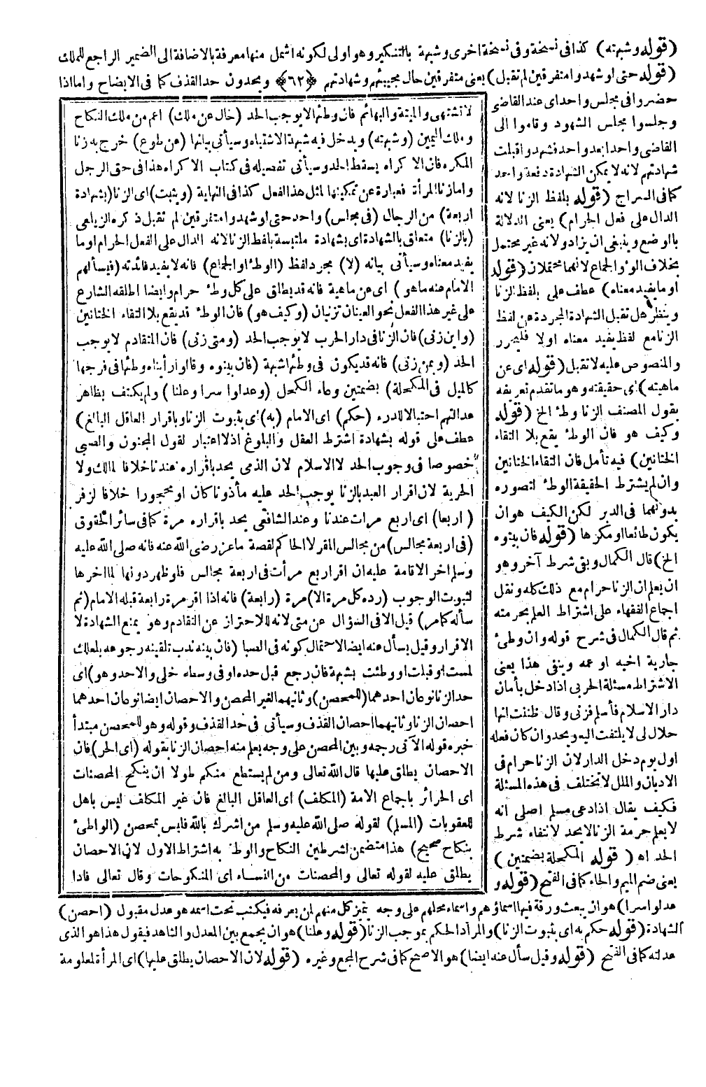 (قَوْلُهُ الْمُكْحُلَةُ بِضَمَّتَيْنِ) يَعْنِي ضَمَّ الْمِيمِ وَالْحَاءِ كَمَا فِي الْفَتْحِ (قَوْلُهُ وَعُدِّلُوا سِرًّا) هُوَ أَنْ يَبْعَثَ وَرَقَةً فِيهَا أَسْمَاؤُهُمْ وَأَسْمَاءُ مَحَلَّتِهِمْ عَلَى وَجْهٍ يَتَمَيَّزُ كُلٌّ مِنْهُمْ لِمَنْ يَعْرِفُهُ فَيَكْتُبُ تَحْتَ اسْمِهِ هُوَ عَدْلٌ مَقْبُولُ الشَّهَادَةِ (قَوْلُهُ حُكِمَ بِهِ أَيْ بِثُبُوتِ الزِّنَا) وَالْمُرَادُ الْحُكْمُ بِمُوجَبِ الزِّنَا (قَوْلُهُ وَعَلَنًا) هُوَ أَنْ يَجْمَعَ بَيْنَ الْمُعَدِّلِ وَالشَّاهِدِ فَيَقُولُ هَذَا هُوَ الَّذِي عَدَّلْته كَمَا فِي الْفَتْحِ (قَوْلُهُ وَقِيلَ سَأَلَ عَنْهُ أَيْضًا) هُوَ الْأَصَحُّ كَمَا فِي شَرْحِ الْمَجْمَعِ وَغَيْرِهِ (قَوْلُهُ لِأَنَّ الْإِحْصَانَ يُطْلَقُ عَلَيْهَا) أَيْ الْمَرْأَةِ الْمَعْلُومَةِ