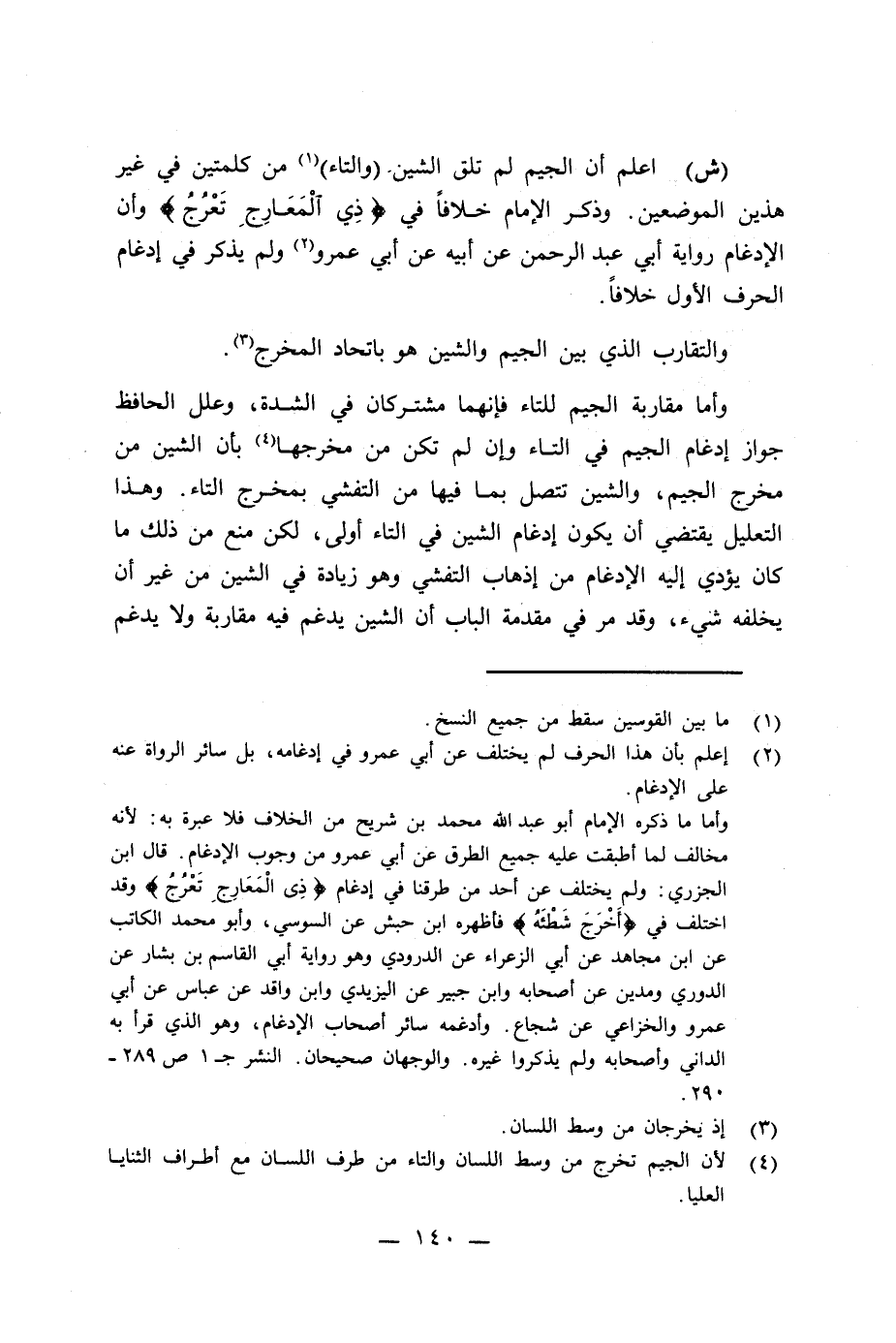 (¬4) لأن الجيم تخرج من وسط اللسان والتاء من طرف اللسان مع أطراف الثنايا العليا.