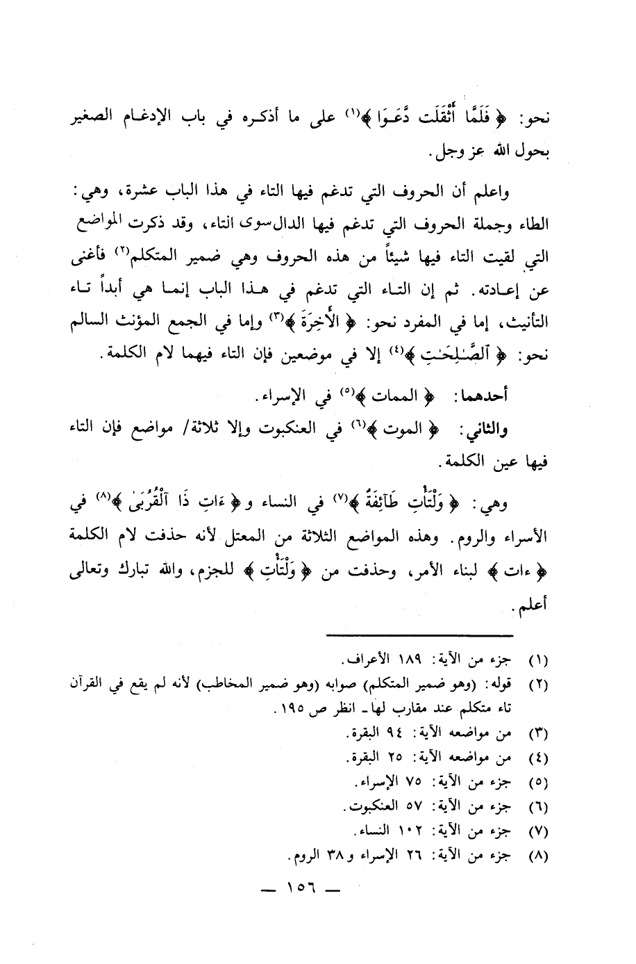 (¬2) قوله: (وهو ضمير المتكلم) صوابه (وهو ضمير المخاطب) لأنه لم يقع في القرآن تاء متكلم عند مقارب لها - انظر ص 195.