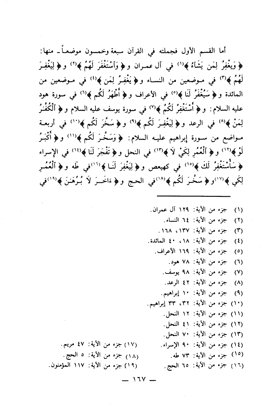 أما القسم الأول فجملته في القرآن سبعة وخمسون موضعاً - منها: {وَيَغْفِرُ لِمَنْ يَشَاءُ} (¬1) في آل عمران و {وَاسْتَغْفِرْ لَهُمْ} (¬2) و {لِيَغْفِرَ لَهُمْ} (¬3) في موضعين من النساء و {يَغْفِرُ لِمَنْ} (¬4) في موضعين من المائدة و {سَيُغْفَرُ لَنَا} (¬5) في الأعراف و {أَطْهَرُ لَكُمْ} (¬6) في سورة هود - عليه السلام -: و {أَسْتَغْفِرُ لَكُمْ} (¬7) في سورة يوسف - عليه السلام - و {الْكُفَّرُ لِمَنْ} (¬8) في الرعد و {لِيَغْفِرَ لَكُم} (¬9) و {سَخَّرَ لَكُم} (¬10) في أربعة مواضع من سورة ابراهيم - عليه السلام -: {وَسَخَّرَ لَكُم} (¬11) و {أَكْبَرُ لَوْ} (¬12) و {الْعُمُرِ لِكَيْ لَا} (¬13) في النحل و {تَفْجُرَ لَنَا} (¬14) في الِإسراء {سَأَسْتَغْفِرُ لَكَ} (¬15) في كهيعص و {لِيَغْفِرَ لَنَا} (¬16) في طه و {الْعُمُرِ لِكَيْ} (¬17) و {سَخرَ لَكُم} (¬18) في الحج و {آخَرَ لَا بُرْهَانَ} (¬19) في
